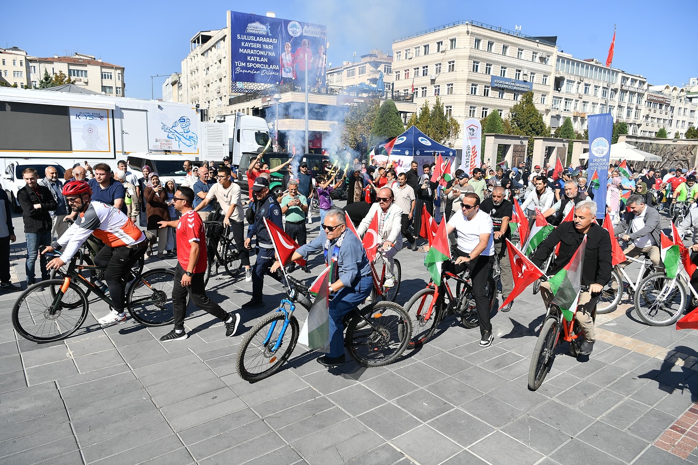 Cumhuriyet Meydanı’ndan başlayan "Kayseri’den Filistin’e Küresel Sumud Filosu’na Destek" bisiklet turu, Recep Tayyip Erdoğan Millet Bahçesi Esenyurt Kapı’da tamamlanırken etkinliğe gencinden yaşlısına çok sayıda vatandaş katılarak Küresel Sumud Filosu’na ve Filistin’e destek mesajı verdi.