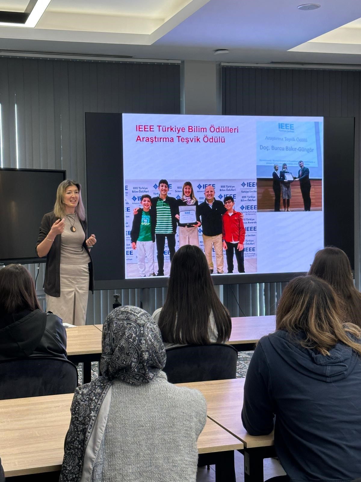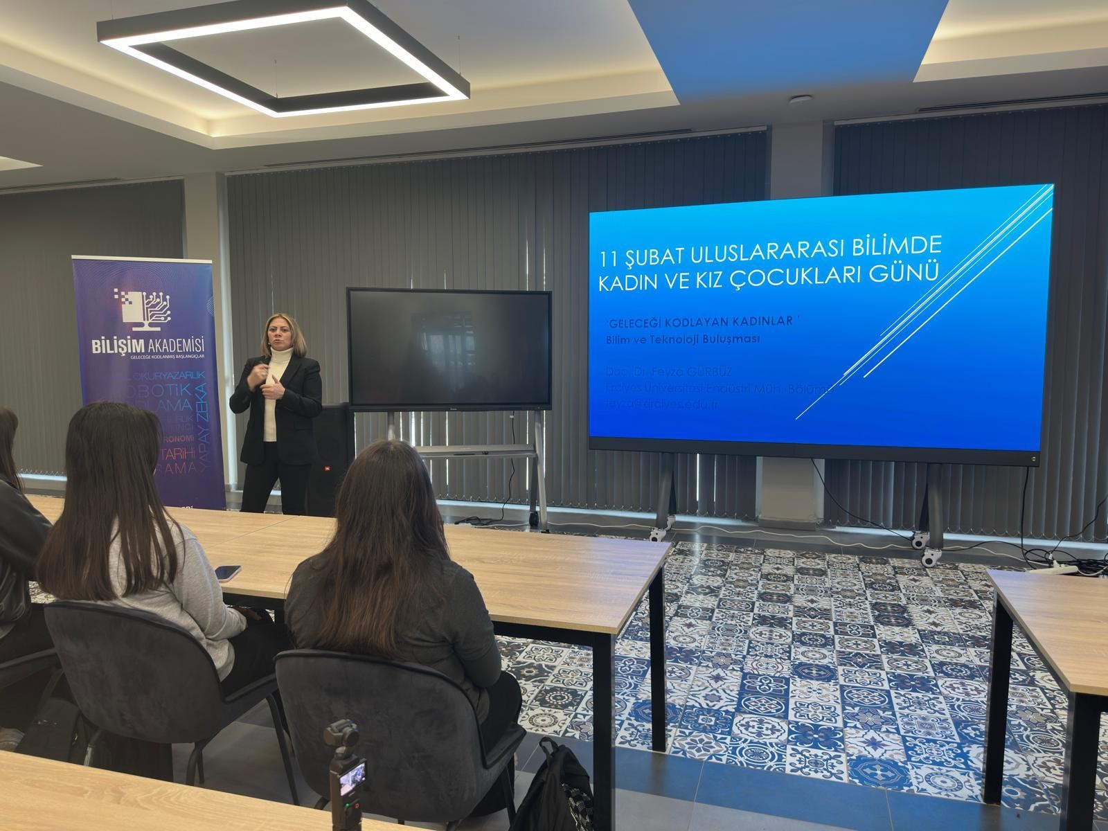 Programın moderatörlüğünü Scientix STEM Türkiye Elçisi ve Murat Kantarcı Bilim ve Sanat Merkezi öğretmeni Çelebi Kalkan üstlenirken, Abdullah Gül Üniversitesi Bilgisayar Mühendisliği Bölümü’nden Prof. Dr. Burcu Güngör ile Erciyes Üniversitesi Endüstri Mühendisliği Bölümü’nden Doç. Dr. Feyza Gürbüz bilgi ve tecrübelerini öğrencilerle paylaştı. Akademisyenler, bilişim ve mühendislik alanlarında kadın temsilinin arttırılmasının önemine dikkat çekerek, genç kızlara ilham veren kariyer yolculuklarını aktardı.