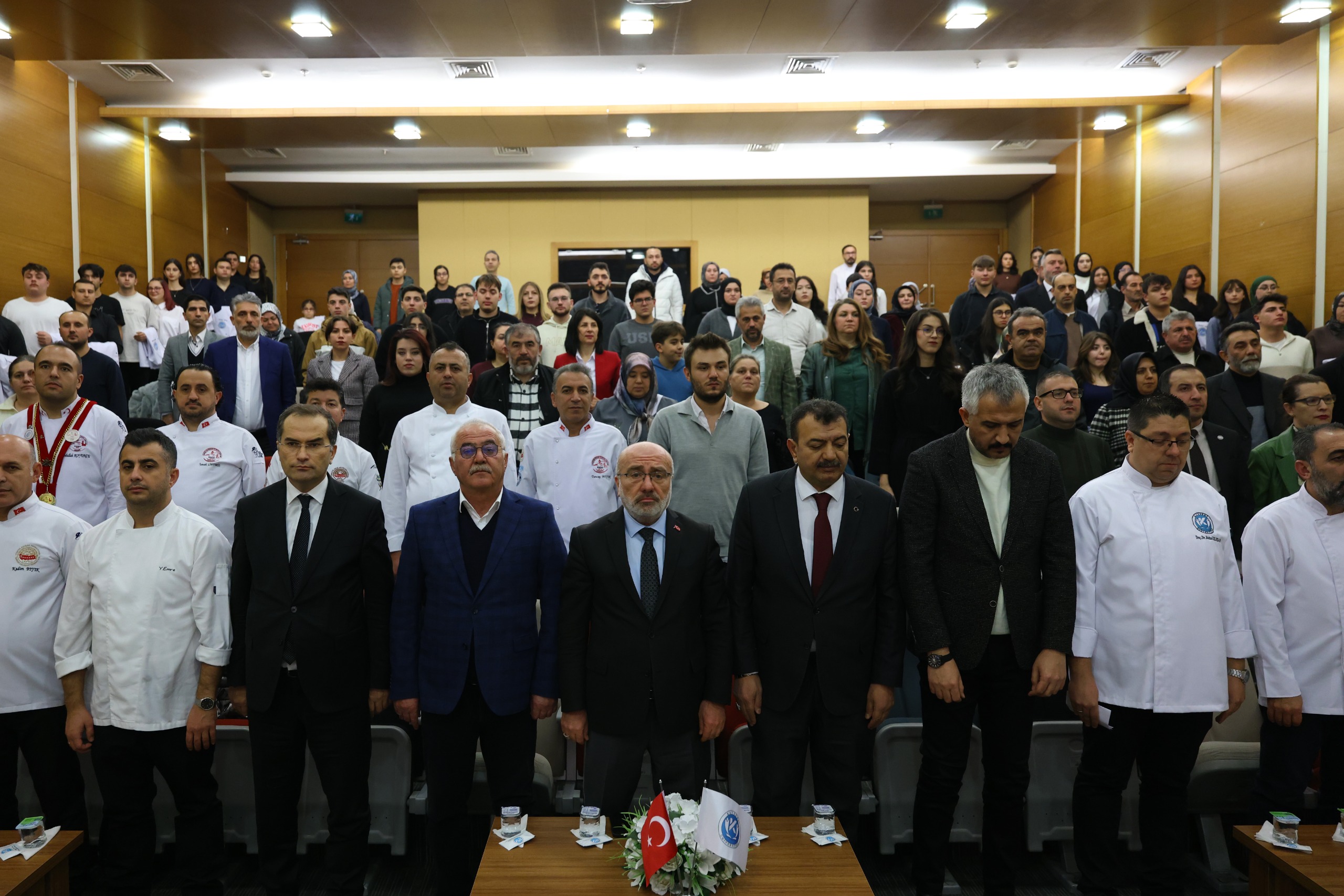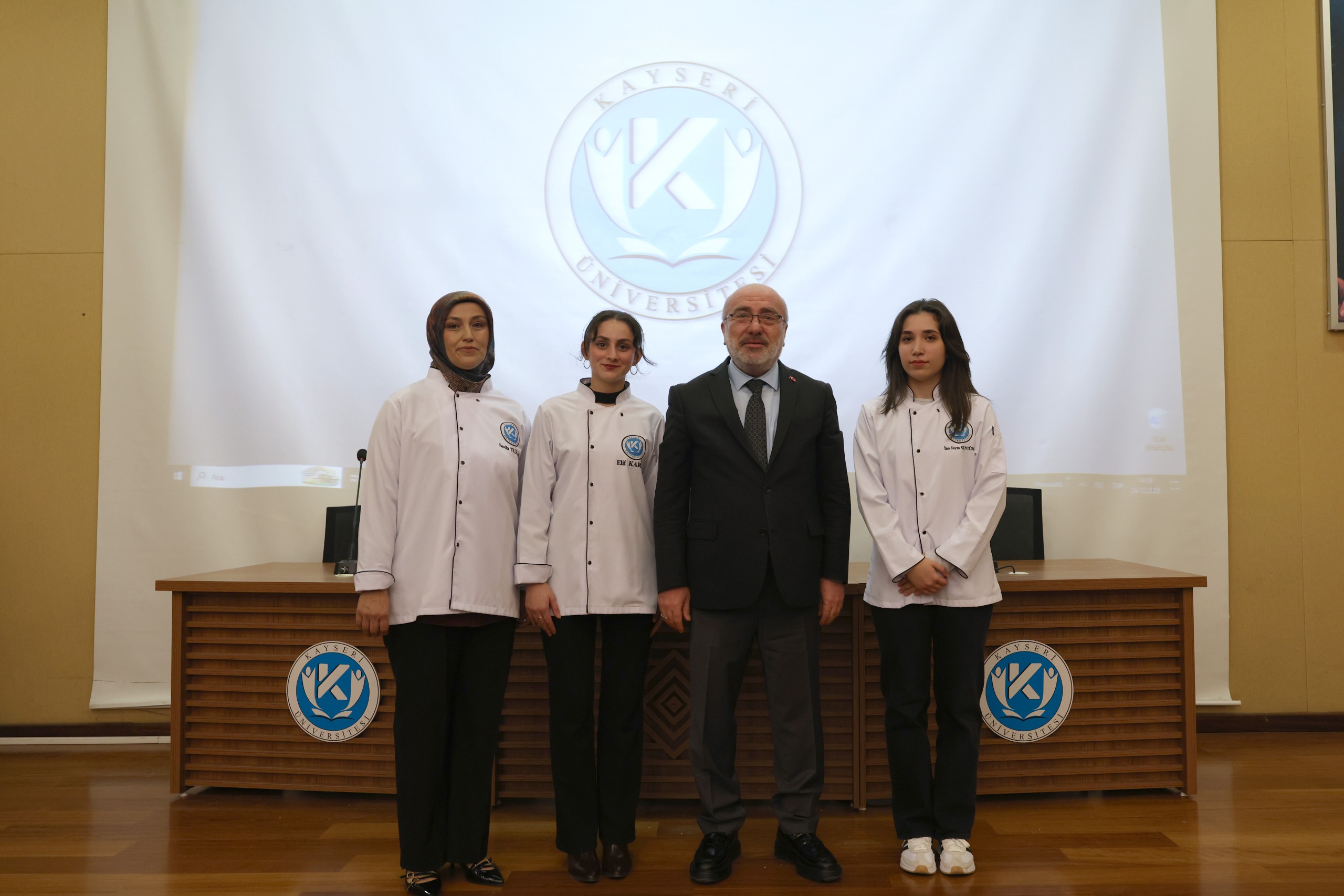 Kayseri Üniversitesi (KAYÜ) Gastronomi ve Mutfak Sanatları Bölümü ile Safiye Çıkrıkçıoğlu Meslek Yüksekokulu Aşçılık Programı öğrencileri için “Önlük Giydirme Töreni” düzenlendi. Uygulamalı Bilimler Fakültesi Konferans Salonu’nda gerçekleştirilen programın açılışında sırasıyla; Safiye Çıkrıkçıoğlu Meslek Yüksekokulu Otel Lokanta İkram Hizmetleri Bölümü Aşçılık Programı Başkanı Öğr. Gör. Mehmet Nazikgül, Uygulamalı Bilimler Fakültesi Gastronomi ve Mutfak Sanatları Bölüm Başkanı Doç. Dr. Reha Kılıçhan, Uygulamalı Bilimler Fakültesi Dekanı Prof. Dr. Oğuz Öcal, Safiye Çıkrıkçıoğlu Meslek Yüksekokulu Müdürü ve Rektör Yardımcısı Prof. Dr. Ertuğrul Şahmetlioğlu, Kayseri Gastronomi ve Mutfak Sanatları Derneği Başkanı Kadim Bıyık, Kayseri Lokantacılar ve Pastacılar Odası Başkanı Altan Aydemir ile Kayseri Üniversitesi Rektörü Prof. Dr. Kurtuluş Karamustafa birer konuşma yaptı.