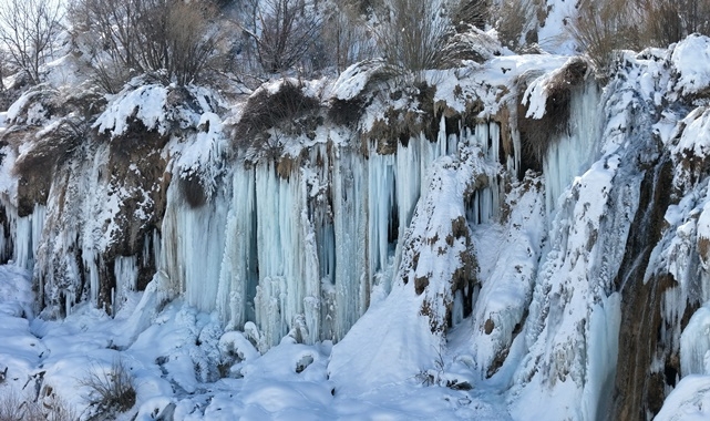 Girlevik Şelalesi buz tuttu, 2 metrelik buz sarkıtları oluştu.