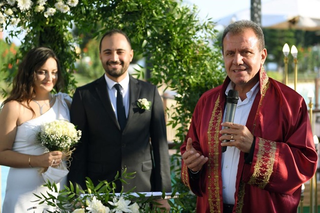 Mersin Büyükşehir Belediye Başkanı Vahap Seçer’in kıydığı nikah töreninde, Antalyaspor Kulüp Başkanı Fikret Öztürk, Başkan Yardımcısı Ali Şafak Öztürk, CHP Mersin Milletvekili Ali Mahir Başarır ve Antalyaspor Kulübü scoutlarından Ahmet Korkmaz çelenk gönderdi.