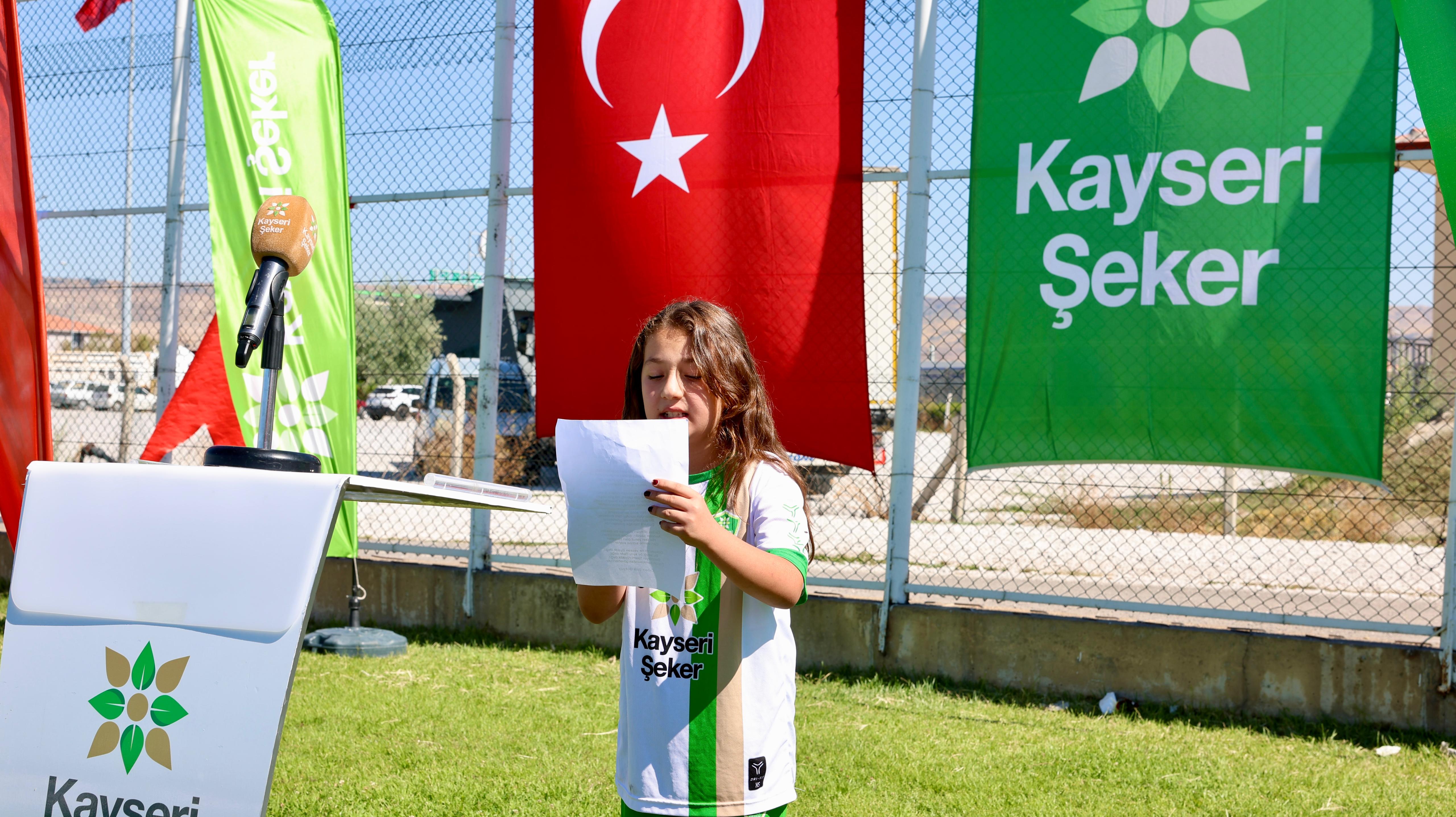 Kayseri Şeker’in sosyal sorumluluk anlayışıyla, Kayseri Şekerspor Kulübü organizasyonunda geleneksel hale getirdiği yaz spor okullarının 13’üncüsü, bu yıl da yoğun ilgiyle tamamlandı. Bu yıl 13’üncüsü düzenlenen yaz spor okulunun kapanış törenine; Kayseri Pancar Ekicileri Kooperatifi Yönetim Kurulu Başkanı Hüseyin Akay, Kayseri Şeker Yönetim Kurulu Başkanı Hurşit Dede, Kayseri Şeker Genel Müdürü İsmail Gedik ile Genel Müdür Yardımcıları, Birim Müdürlerinin yanı sıra kulüp başkanı, antrenörler, veliler ve yaz spor okulu öğrencileri katıldı. Program kapsamında öğrenciler, Arif Nihat Asya’dan “Bayrak” ile “Dua” ve Orhan Şaik Gökyay’dan “Bu Vatan Kimin” şiirlerini seslendirerek anlamlı bir performans sergiledi.