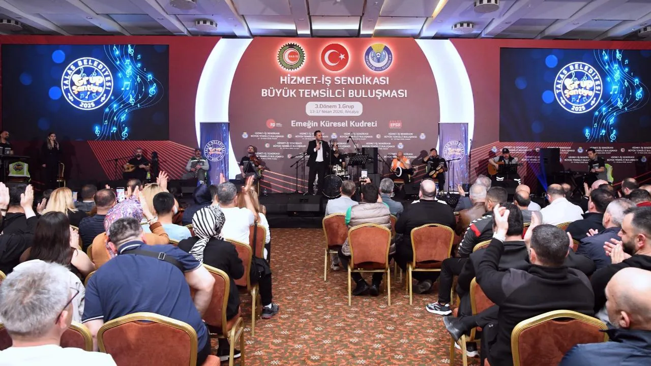 Talas Belediyesi Grup Şantiye Müzik Ekibi, HAK-İŞ Konfederasyonu ve Hizmet-İş Sendikası’nın davetiyle Antalya’da düzenlenen programda sahne alarak izleyenlere unutulmaz bir müzik ziyafeti sundu.