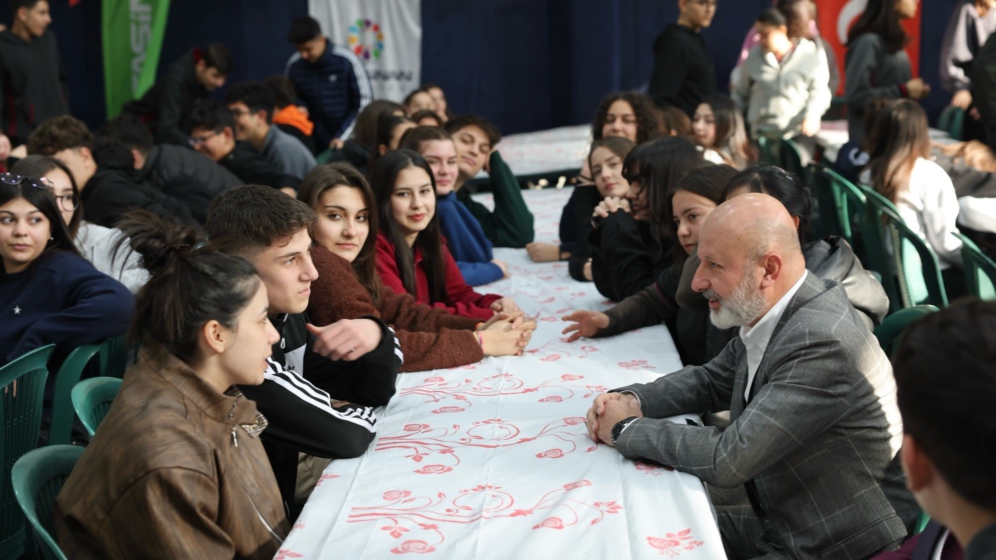 Öğrencilere hitap eden Başkan Çolakbayrakdar, haftalık olarak düzenlenen “Kocaburger” programı çerçevesinde gençlerle bir araya geldiklerini belirterek, “Sevgili gençler, bugün sizin okulunuzda birlikteyiz. Rutin olarak haftalık “Kocaburger” programı dâhilinde gençlerle bir araya geliyoruz. Gençlerin enerjisinden, taleplerinden ve beklentilerinden sohbet etmek için buradayız. Biz, sadece şehri imar eden; yollarını, parklarını, bahçelerini düzenleyen bir belediye olmanın ötesinde, gençlerin geleceğine yatırım yapan, onların yarınları için daha güzel ve daha yaşanabilir bir Kayseri inşa etmeye çalışan bir anlayışla hareket ediyoruz. Bu minvalde sizlerle bir arada olmayı, beklentilerinize cevap verecek ve yaşayacağınız şehri sizlere göre şekillendirecek bir yaklaşım olarak görüyoruz. Bu nedenle gerek bu tür programlarla gerekse farklı etkinliklerle sizlerle bir araya geliyoruz. Hepinize sağlıklı ve güzel yarınlar diliyorum. Sizler bu ülkenin geleceğisiniz. Bu şehrin geleceğisiniz. Ailenizin geleceğisiniz. Umudumuz, istikbalimiz; büyük ve güçlü Türkiye’nin yapı taşları sizlersiniz. Sizler ruhen ve bedenen ne kadar donanımlı olursanız, geleceğimiz de o kadar aydınlık ve güçlü olacaktır. Bu vesileyle sizlerden bir istirhamım var: Sadece derslerinize çalışmakla yetinmeyin; hayatı iyi bilin, dünyayı iyi tanıyın. Çünkü sizin rakipleriniz yalnızca sıra arkadaşlarınız ya da okul arkadaşlarınız değildir. Sizler, dünyayla rekabet ediyorsunuz; dünyadaki akranlarınızla yarış içindesiniz. Bu nedenle, kendi medeniyet dünyamızda var olan değerleri en iyi şekilde öğrenerek, donanımlı bir biçimde geleceğe yürümeniz gerekiyor. Bu noktada belediye olarak her zaman yanınızdayız ve bundan sonra da daha güçlü bir şekilde yanınızda olmaya devam edeceğimizi özellikle belirtmek istiyorum. Hepinize huzurlu ve sağlıklı günler diliyorum.” diye konuştu. Başkan Çolakbayrakdar, belediye olarak gençlerin her zaman yanında olduklarını ve destekleri artırarak sürdüreceklerini sözlerine ekledi.