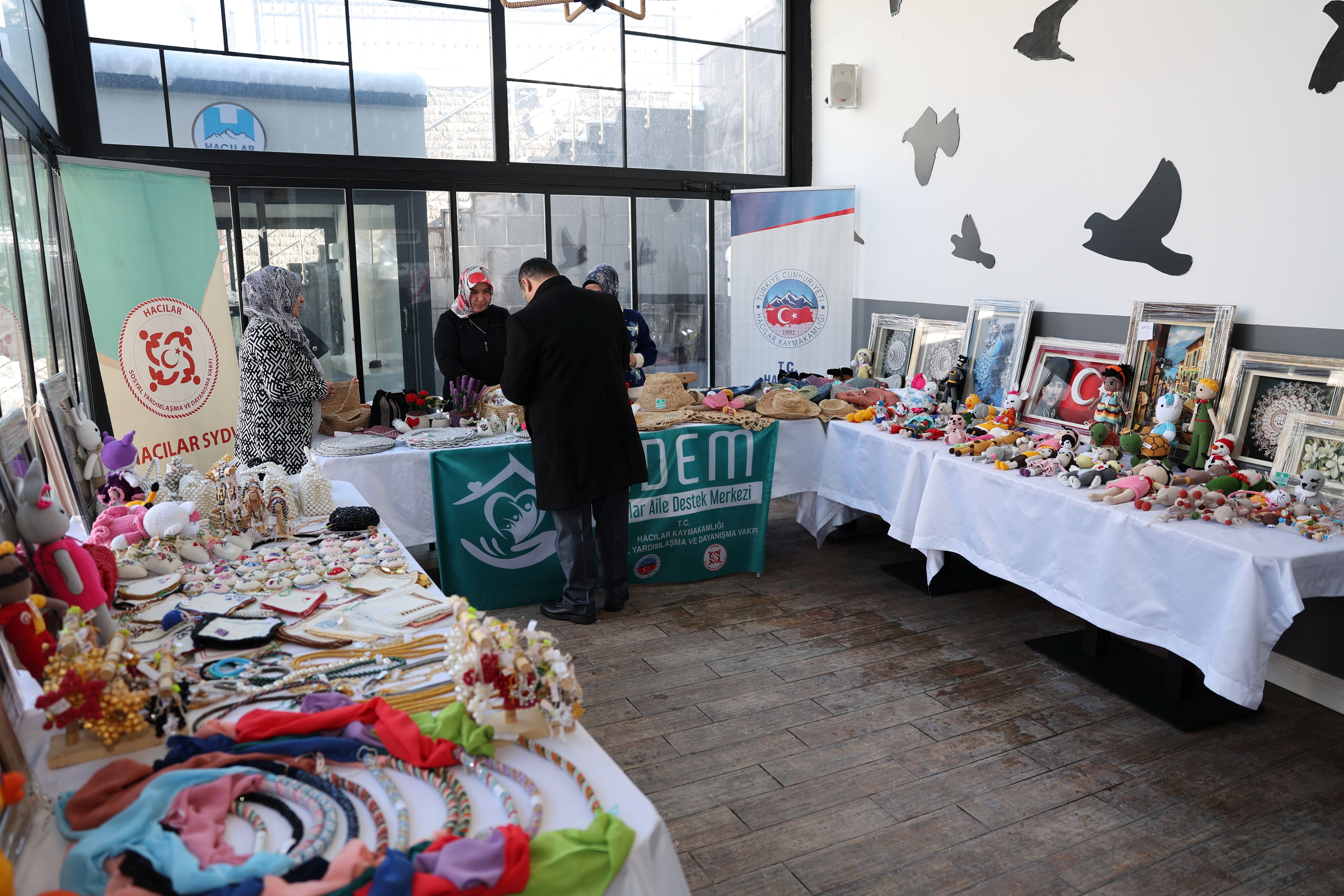 Programa; Hacılar Kaymakamı Cüneyt Caner, Hacılar Belediye Başkanı Bilal Özdoğan, ilçe protokolü, kursiyerler ve çok sayıda vatandaş katıldı. Hacılar Belediye Başkanı Bilal Özdoğan, Hacılar ADEM’in kadınların hem mesleki hem de sosyal gelişimine önemli katkılar sunduğunu vurgulayarak, kadın emeğini destekleyen her çalışmayı önemsediklerini ifade etti. Başkan Özdoğan, "Aile Destek Merkezimizde kadınlarımızın yıl boyunca büyük bir emekle ortaya koyduğu ürünleri görmek bizler için mutluluk verici. Bu çalışmalar, kadınlarımızın üretime katılımını artırırken aynı zamanda aile ve toplum yapısını da güçlendiriyor" dedi. Hayır panayırında, kadın kursiyerlerin el emeği göz nuru ürünleri stantlarda sergilendi. Ziyaretçilerden yoğun ilgi gören ürünler, kursiyerlerin edindikleri bilgi ve becerilerin somut bir yansıması olarak beğeni topladı.