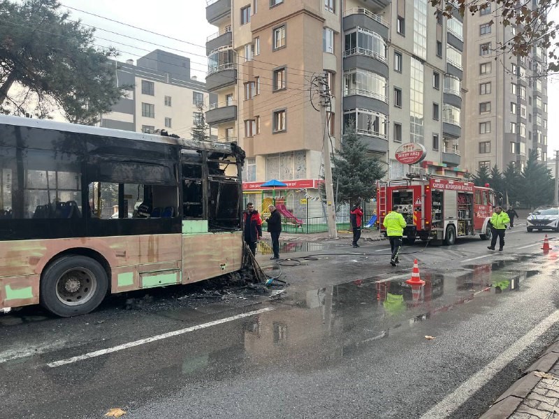 Kayseri'nin Kocasinan ilçesinde özel halk otobüsünde çıkan yangında otobüsün motor kısmı küle döndü.