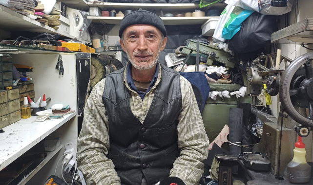 Kayseri'de 60 yaşındaki ayakkabı tamircisi, hayırseverlerin getirmiş olduğu ayakkabıları tamir edip ihtiyaç sahibi insanlarla buluşturuyor.