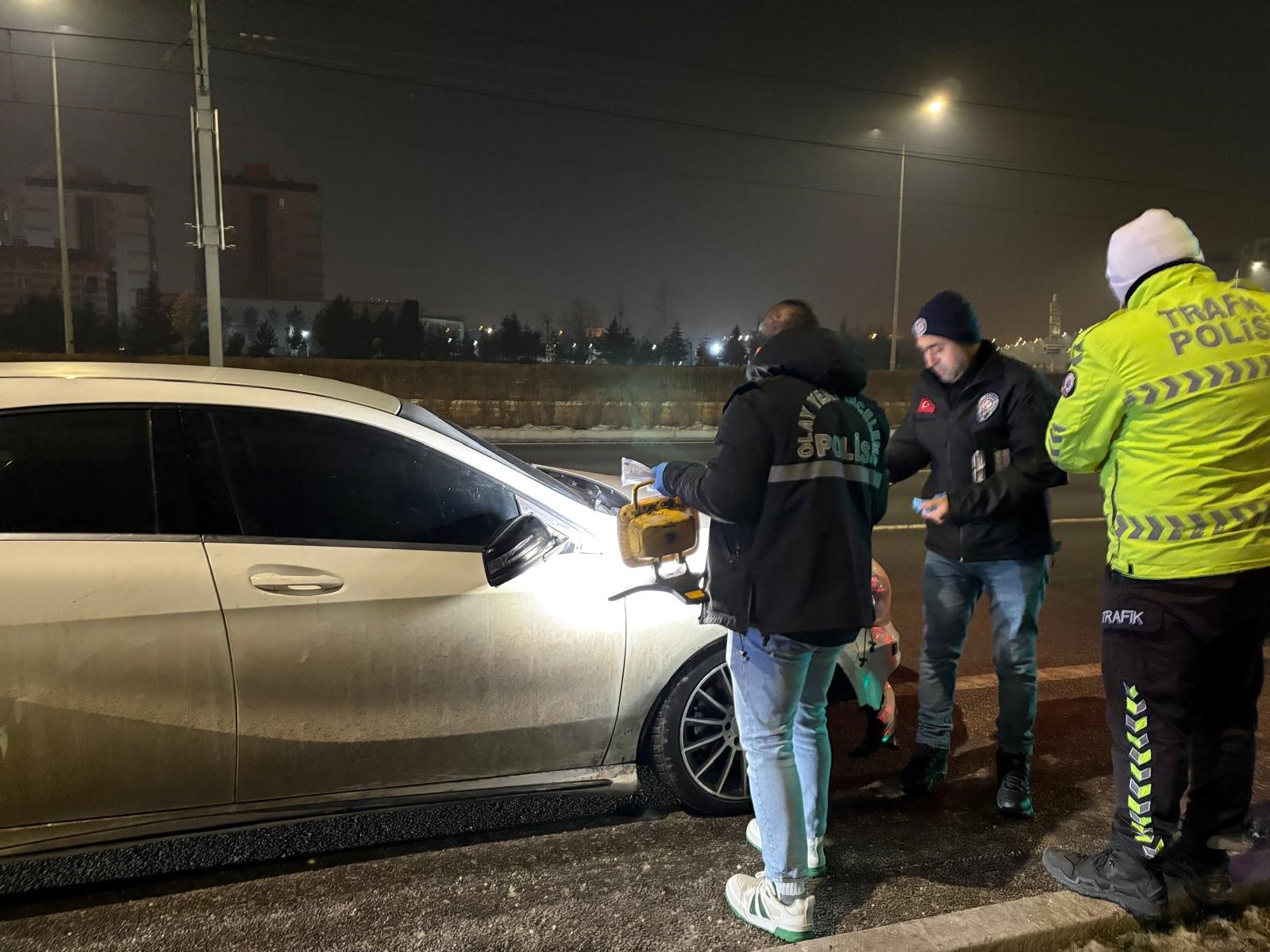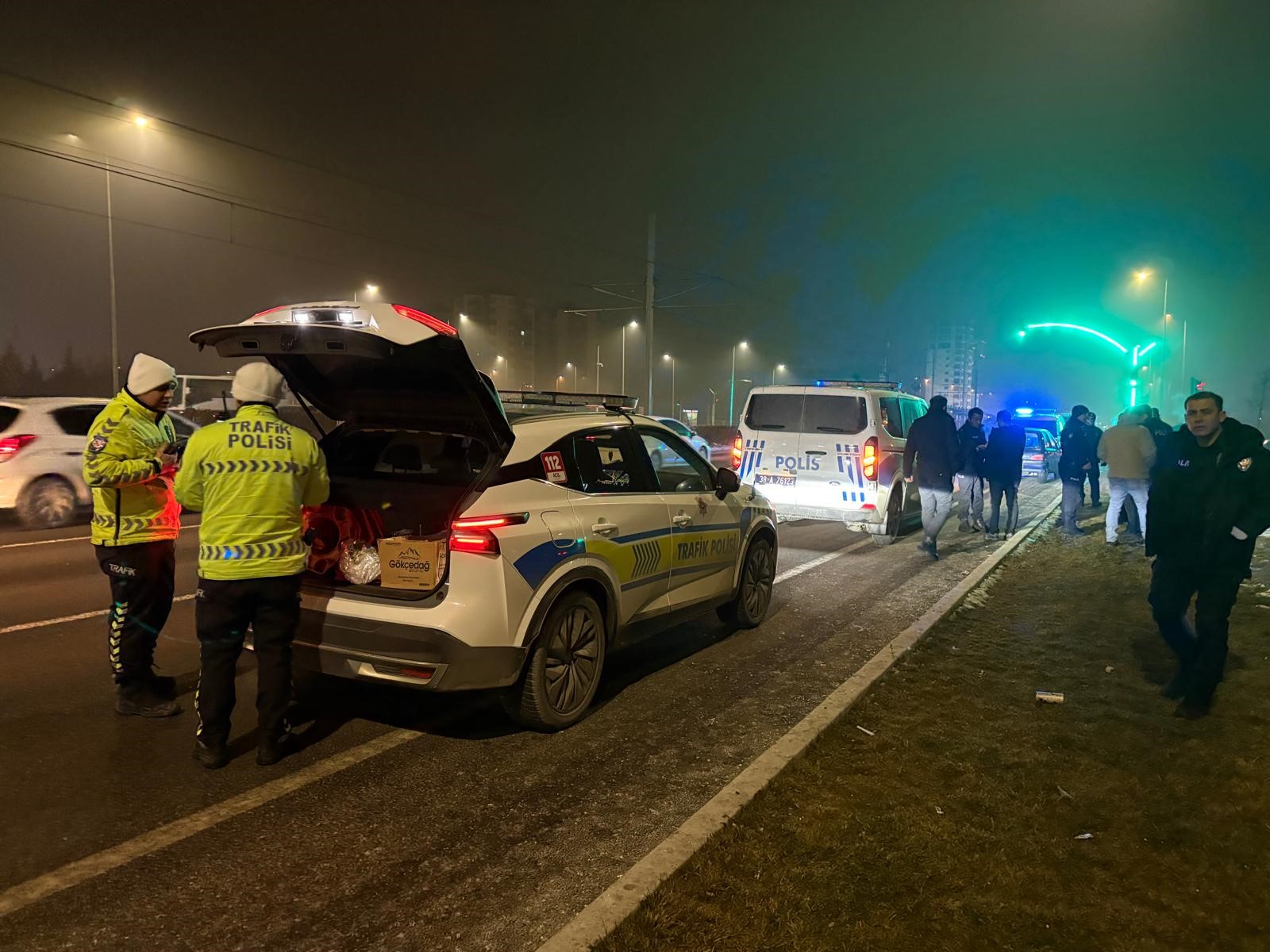 Edinilen bilgiye göre, ilçeye bağlı Germir Mahallesi Hulusi Akar Bulvarı’nda meydana gelen olayda, Serdar T., yönetimindeki 38 ST 608 plakalı otomobille başka bir araçta inceleme yapan polis memuru S.T.’ye ve Ö.B.’ye çarparak, kaçtı. İhbar üzerine bölgeye çok sayıda polis ve sağlık ekibi sevk edildi. Polis ekipleri çevrede güvenlik önlemi alarak, Serdar T.’yi yakalamak için çalışma başlattı. Sağlık ekipleri de yaptıkları ilk müdahalenin ardından polis memuru S.T. ve Ö.B.’yi ambulansla Erciyes Üniversitesi Tıp Fakültesi Hastanesi’ne kaldırdı. Olaydan yaklaşık yarım saat sonra merak edip olay yerine gelen Serdar T., polis ekiplerinin dikkatiyle yakalandı. Serdar T. ekipler tarafından gözaltına alınırken, yapılan kontrollerde Serdar T.’nin 2.83 promil alkollü olduğu ve alkol nedeniyle daha önceden 3 kez ehliyetinin alındığı belirlendi. Serdar T.’ye ‘alkollü araç kullanmak’ ve ‘ehliyetsiz araç kullanmak’ suçundan toplamda 37 bin 356 TL idari para cezası yazıldı.