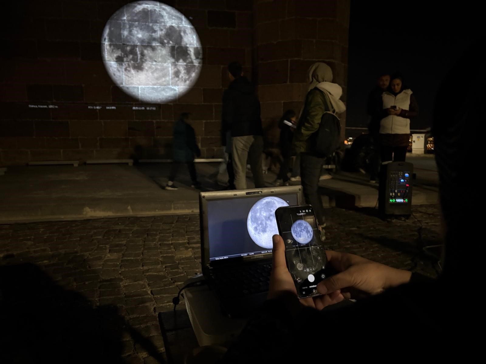 Hıdırellez Gök Gözlem Evi'nin sorumlusu Astronom Tamer Akın, "Ay Dünyamıza en yakın konumda. Ay Dünyamızın etrafında eliptik yörüngede döndüğü için bugün en yakın konumda olmuş oluyor. Yaklaşık 365 bin kilometre gibi bir yakınlıkta. En uzun konumu da 410-415 bin kilometre gibi olmuş oluyor. Normal dolunay zamanından yüzde 15 daha büyük ve yüzde 30 daha parlak gözüküyor. Şu anda Süper Ay'ı canlı olarak Hıdırellez Köşkü'nün duvarına yansıttık. Bu güzel gökyüzü olayında başta Kayseri halkımız ve çocuklarımız olmak üzere burada evrene bir pencere açmış oluyoruz. Geleceğin Alper Gezeravcıları, geleceğin astronotları Kayseri'den neden çıkmasın diye bir amaç içerisindeyiz. Bu akşam da katılımcılarımızın çok memnun kalacağını düşünüyorum. Baştan kendileri Ay'ı çıplak gözle gözlemlemiş olacaklar. Büyüklüğünü ve parlaklığını gözlemleyecekler. Daha sonra gök gözlemevimize gideceğiz, oradaki teleskopumuzdan Ay'ın kraterlerine kadar kendilerine sörf yaptırmış olacağız. İnşallah buna benzer gök olaylarında tüm Kayseri halkımızı buraya bekliyoruz" diye konuştu.