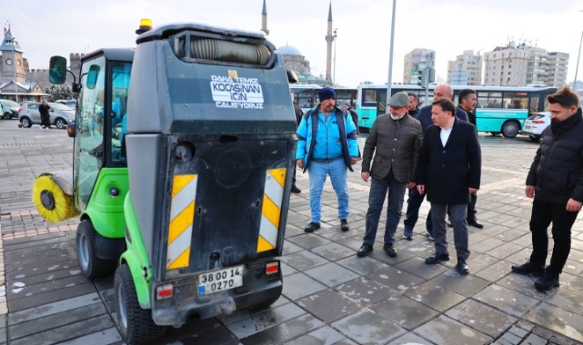 Kocasinan Belediye Başkanı Ahmet Çolakbayrakdar, Kayseri Valisi Gökmen Çiçek ile birlikte Cumhuriyet Meydanı’nda yürütülen kar temizleme çalışmalarını yerinde inceleyerek, özellikle dar sokaklar ve kaldırımlarda etkin temizlik sağlayan modern nilfisk araçları hakkında bilgiler verdi. Vatandaşların kış mevsimini güvenli ve huzurlu bir şekilde geçirmesi adına tüm hazırlıkların önceden yapıldığını vurgulayan Başkan Çolakbayrakdar, "Kar, rahmettir ve berekettir. Hemşehrilerimizin bu süreci sorunsuz şekilde geçirebilmeleri için ekiplerimiz 24 saat esasına göre görev başındadır" dedi.Kar yağışının başlamasıyla birlikte özellikle merkez ve kırsal mahallelerde ana arterlerin açık tutulması için yoğun mesai harcayan ekiplerin, ilk kar sınavını başarıyla verdiğine dikkat çeken Başkan Çolakbayrakdar, "Başta ilgisi ve alakasından dolayı Sayın Valimize çok teşekkür ediyorum. Meteorolojik uyarıları dikkate alarak tüm önlemlerimizi önceden aldık. Fen İşleri, Temizlik İşleri ve Kırsal Hizmetler Müdürlüğümüze bağlı ekiplerimiz; ana caddelerden sokaklara, kaldırımlardan yaya yollarına kadar her noktada çalışmalarını sürdürüyor. Modern ekipmanlarımız, nilfisk araçlarımız, greyderlerimiz ve kar küreme ekiplerimizle birlikte özellikle yaya güvenliğini ön planda tutuyoruz. Don riskine karşı da tuzlama çalışmalarımız aralıksız devam ediyor" ifadelerine yer verdi.