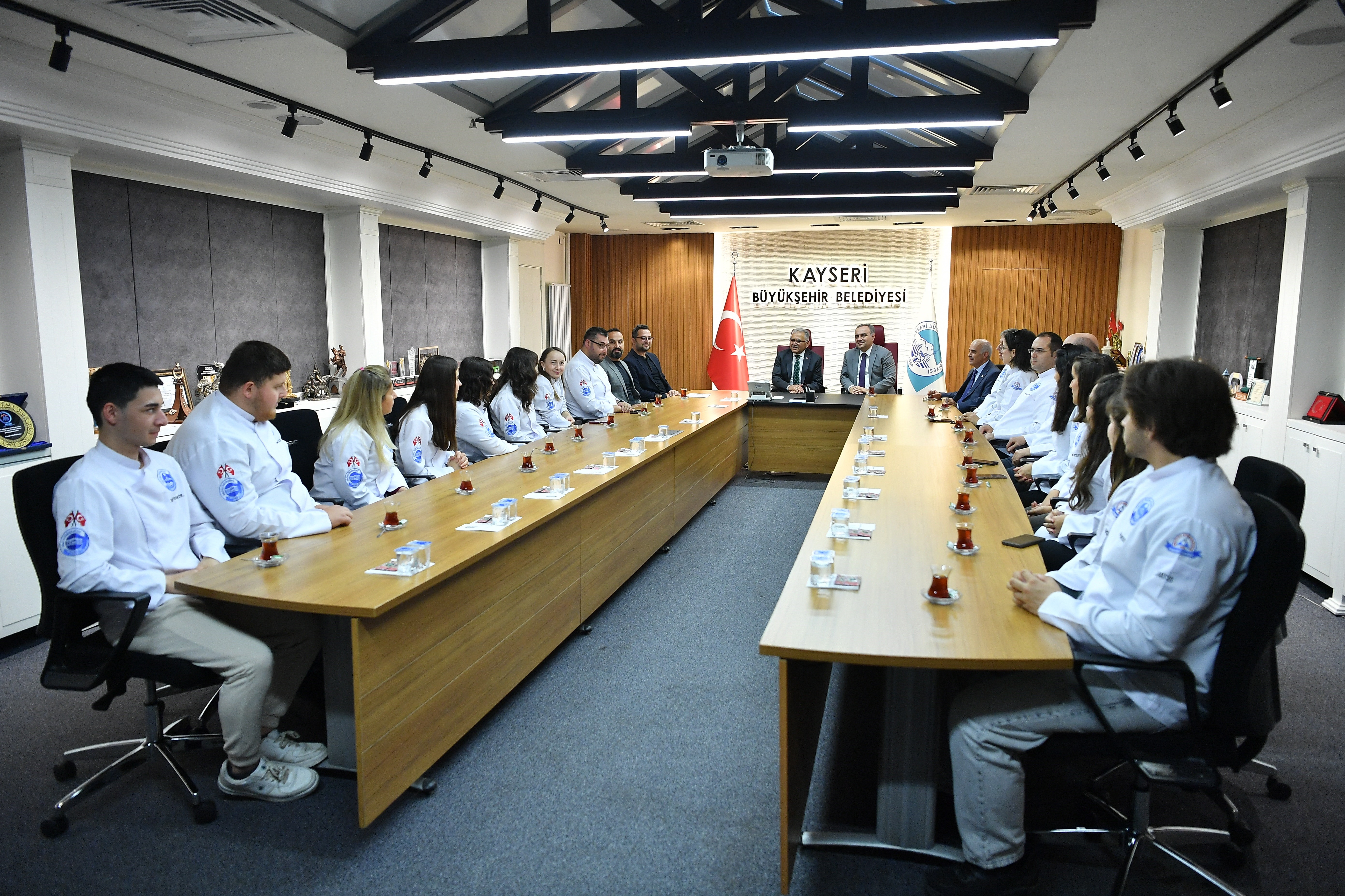 Öğrencilerle tek tek selamlaşan Başkan Büyükkılıç, sıcak ve samimi ortamda gerçekleşen ziyarette, gastronomi alanında Kayseri’nin ulusal bazda yenilikçi şehirler listesine girmesi yönünde gayretlerini sürdürdüklerini ifade etti. Kayseri’yi binlerce yılın getirdiği zenginliklerle değişik tatların adresi ve merkezi olarak yorumladıklarını vurgulayan Büyükkılıç, "Bunu da hak ettiğimize inanıyoruz. Kalıcı olmasını sağlama adına Mutfak Sanatları Merkezi’mizi de hayata geçirdik. Kamuoyunda takdir edilmeye başlandı, orada atölyelerimizle, nezih bir ortamda ikramlarıyla eğitim merkezi olacak şekilde gündemde yerini alıyor" diye konuştu.