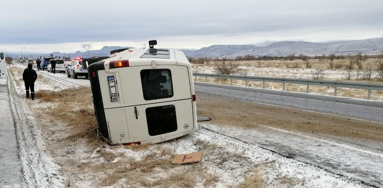 Edinilen bilgiye göre, ilçeye bağlı Semerkent mevkisinde meydana gelen kazada, Bahri Y. yönetimindeki 61 S 2016 plakalı işçi servisi, kar yağışından dolayı kayganlaşan yolda kontrolden çıkarak devrildi. Meydana gelen kazada sürücü ile birlikte servis içerisinde bulunan Erdem B., Ragıp Hakan E., Mustafa K., Coşkun A., Mustafa İ., Barış C., Ahmet A., Bekir K. ve İsmail N. yaralandı. Haber verilmesi üzerine olay yerine jandarma ve sağlık ekipleri sevk edildi. Yaralılar sağlık ekiplerinin olay yerindeki ilk müdahalesinin ardından hastaneye kaldırılırken, kazanın meydana geldiği yolda güvenlik önlemleri aldı.Kazayla ilgili soruşturma başlatıldı.