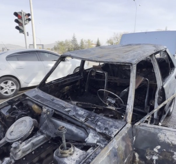 Kırşehir'de sabah iş yerinden evine gitmek üzere yola çıkan bir işçinin otomobili, Ankara–Kayseri kara yolu üzerinde alev aldı.