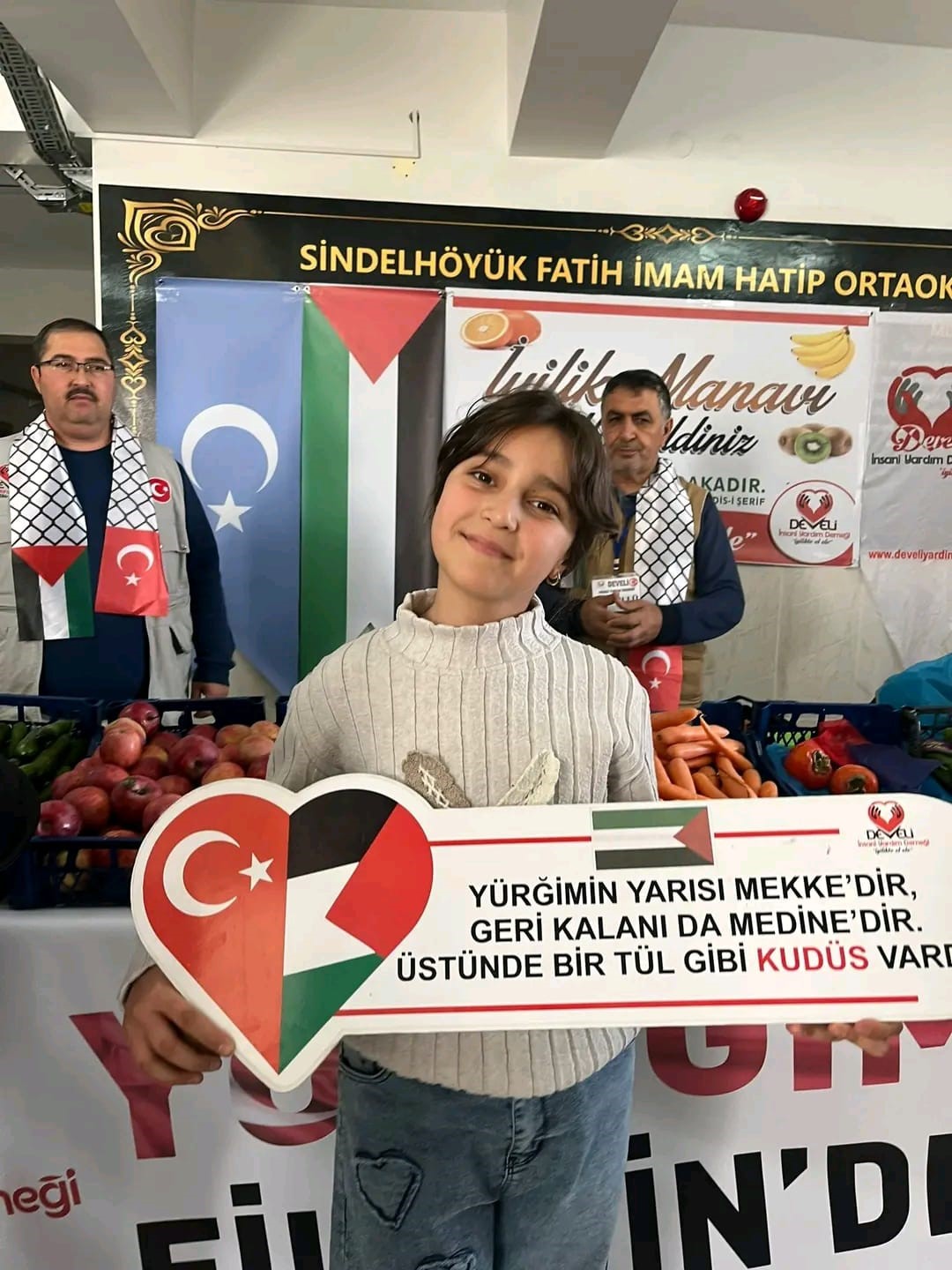 Develi İnsani Yardım Derneği ve Sindelhöyük Fatih İmam Hatip Ortaokulu tarafından Filistinli çocuklara yardım etmek amacıyla iyilik manavı programı düzenlendi.