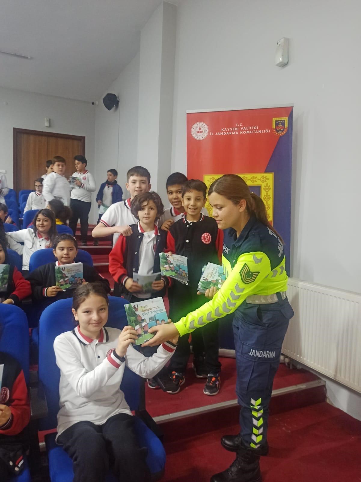 Kayseri’de jandarma ekipleri 142 öğrenciye trafik kuralları hakkında bilgilendirme yaptı.