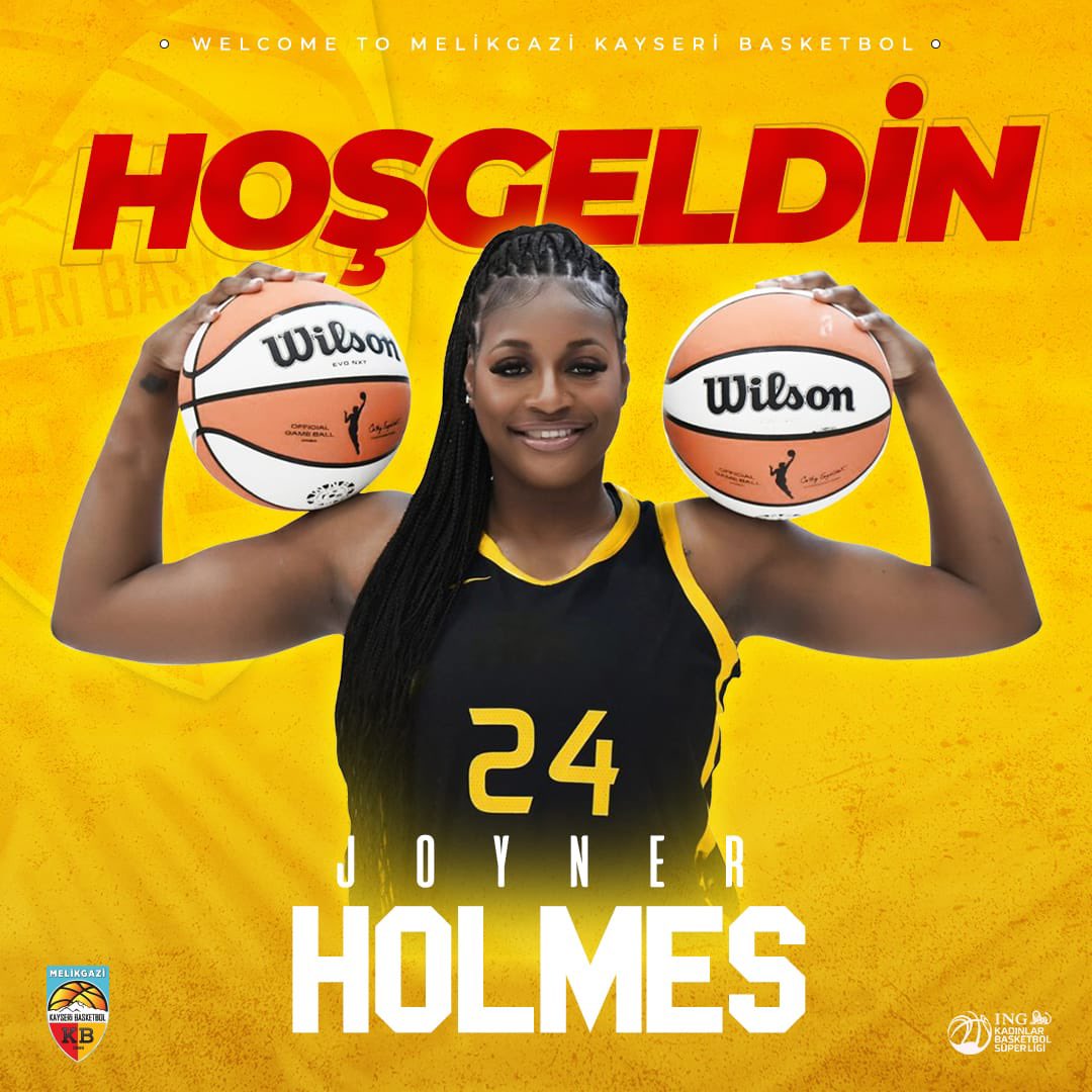 ING Kadınlar Basketbol Süper Lig ekibi Melikgazi Kayseri Basketbol, ABD’li forvet Joyner Holmes ile sözleşme imzaladı. Holmes, sağlık kontrolünden geçtikten sonra takım ile çalışmalara başladı.ING Kadınlar Basketbol Süper Lig’inin yanı sıra Euro Cup Women F Grubu’nda zirve yarışı veren Melikgazi Kayseri Basketbol, kadrosunu güçlendirmeye devam ediyor. Kulüpten yapılan son açıklamada, “2023-2024 sezonu transfer çalışmaları kapsamında ABD’ li forward Joyner Holmes ile sözleşme imzalanmıştır. Memorial hastanesindeki sağlık kontrollü sonrasında takımla çalışmalara başlamıştır. Melikgazi Kayseri Basketbol’a hoş geldin Joyner Holmes” ifadeleri kullanıldı.