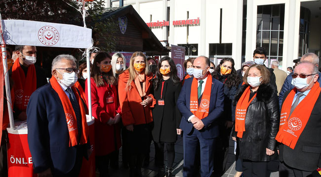 Kadın dernek temsilcileri ile de görüşen Kayseri Büyükşehir Belediye Başkanı Memduh Büyükkılıç, Şiddet; şiddettir, kadınlara yönelik şiddet asla kabul edilemez. Kadınlara şiddet konusunda duyarlılık gösteriyoruz, sıfır tolerans diyoruz. Cumhurbaşkanlığımız ve bakanlıklarımız önderliğinde kurum ve kuruluşlarımızla, sivil toplum örgütleriyle iş birliği yapıyoruz. İçişleri Bakanlığı’nın KADES uygulamasını da çok önemsiyoruz. Eğer şiddete uğrandığı zaman kadınların hemen yetkililere bildirmeleri konusunda kendilerine tavsiyelerde bulunuyoruz” diye konuştu.