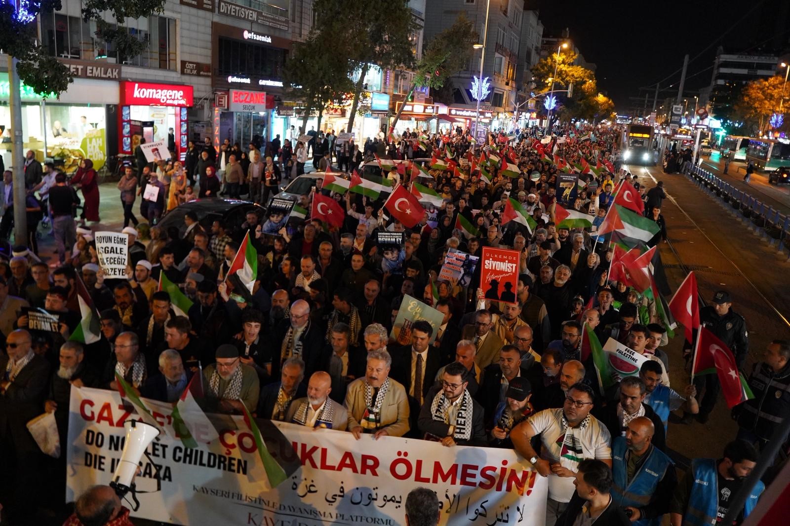 "Bugün burada, binlerce hemşehrimizle birlikte mazlum Filistin halkının yanında olduğumuzu bir kez daha güçlü bir şekilde haykırdık. Filistinli kardeşlerimizin acısı, bizim de acımızdır. Zulme sessiz kalmayacağız, haksızlık karşısında susmayacağız. Kayseri olarak her zaman adaletin, kardeşliğin ve insanlığın yanında olacağız."