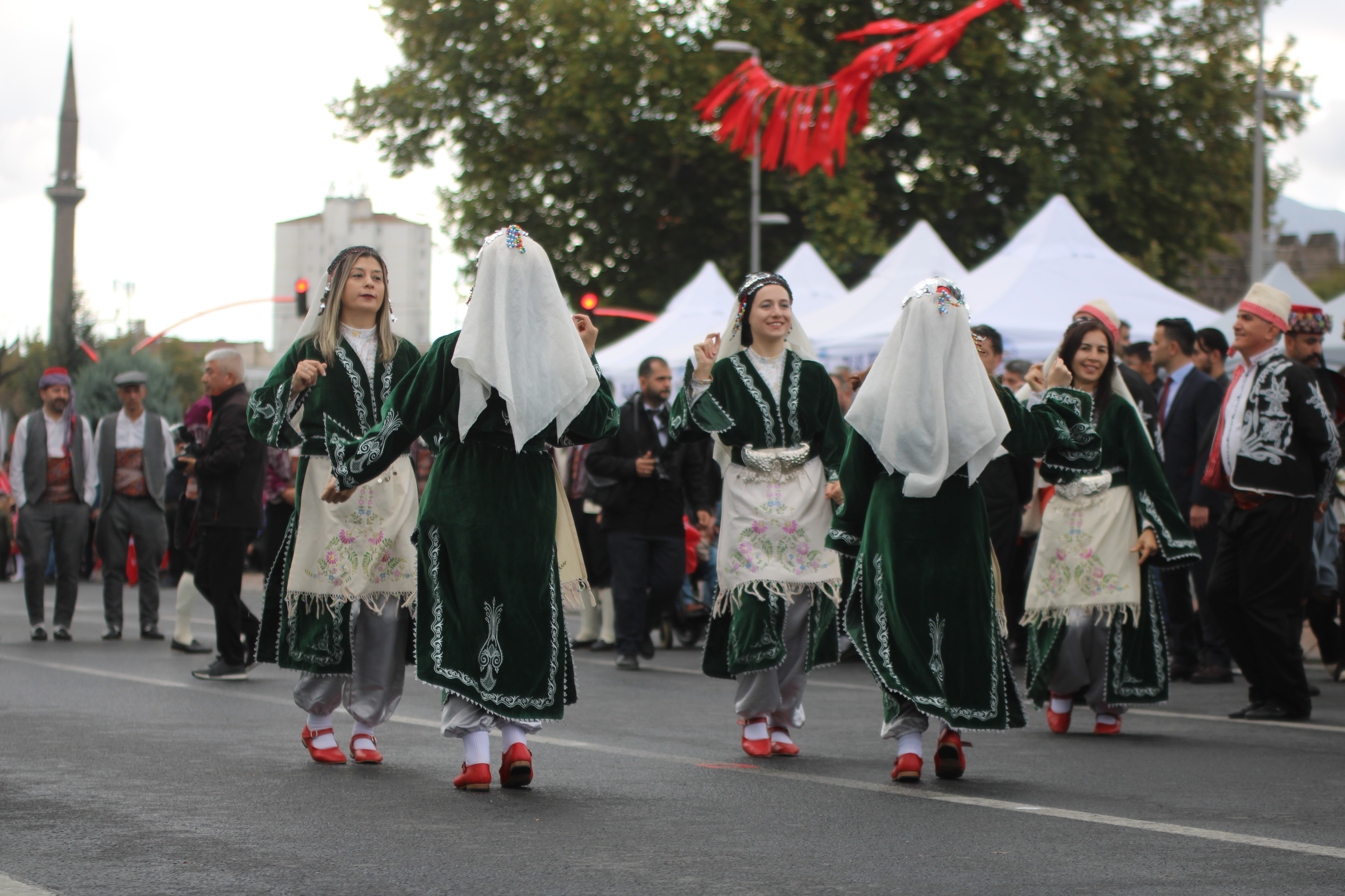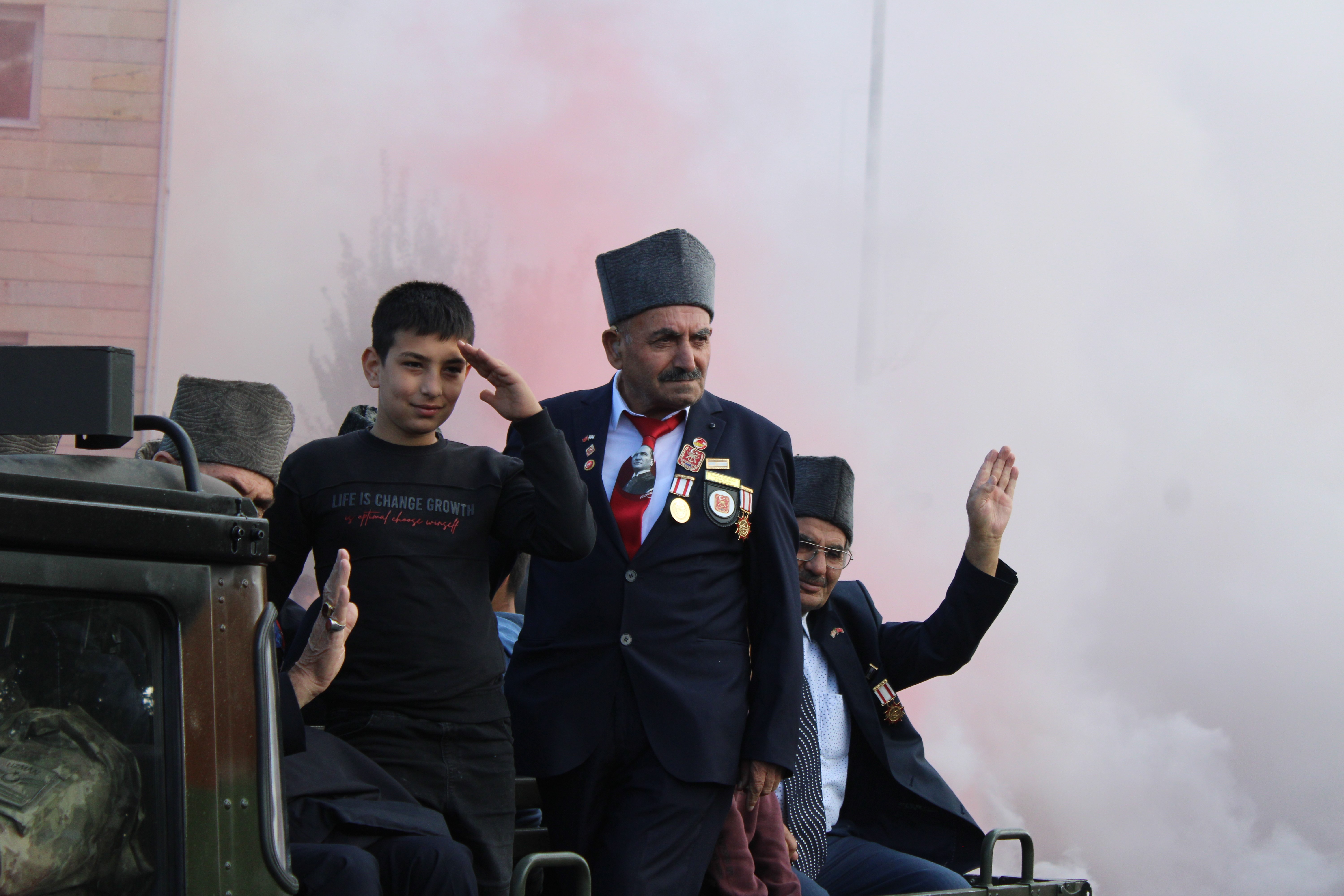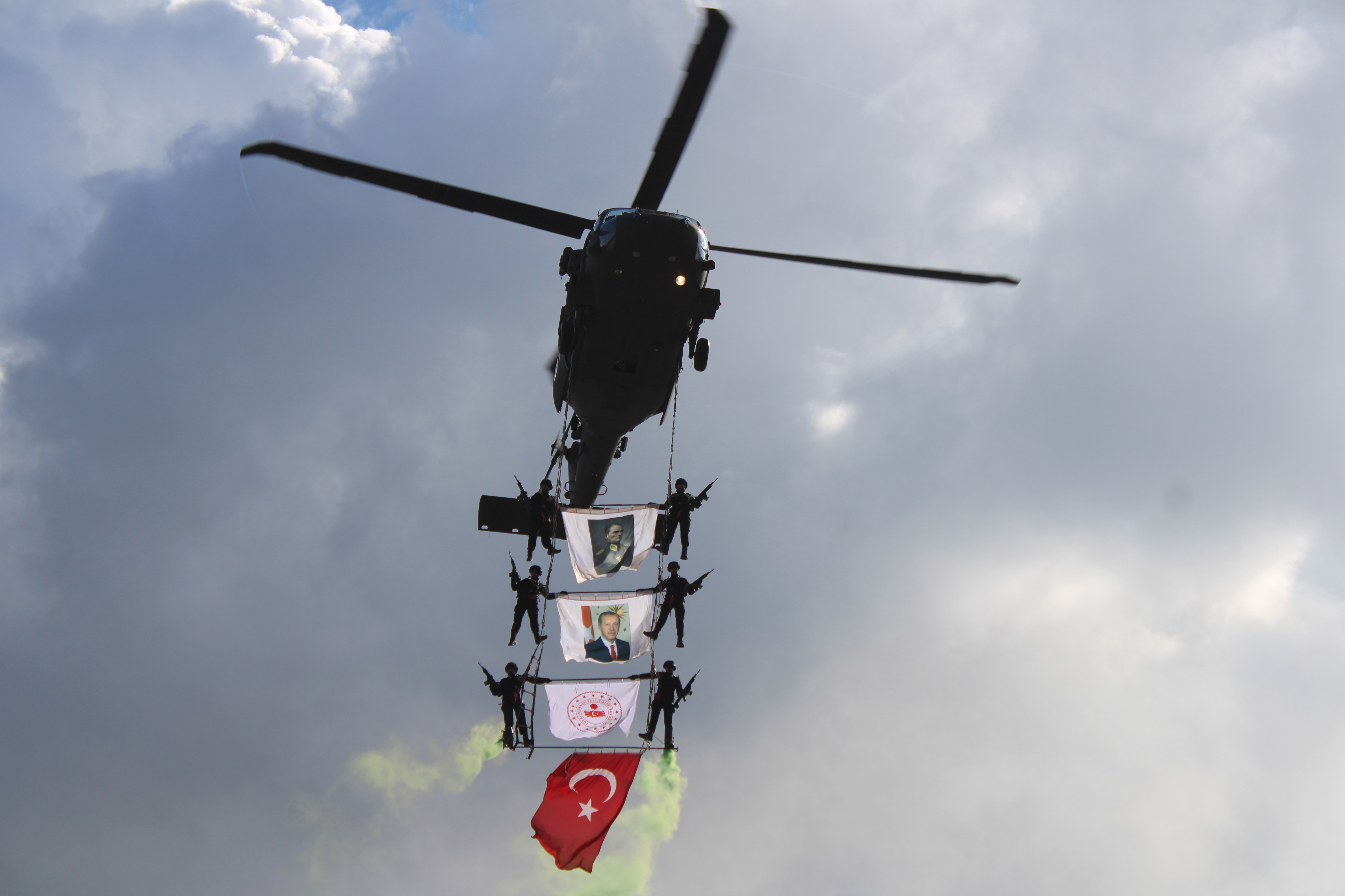 Öte yandan konuşmaların ardından düzenlenen kortejde ise Jandarma Genel Komutanlığı'na bağlı ‘Çelik Kanatlar' ekibi tarafından vatandaşlara üzüm salkımı gösterisi yapıldı. Gösteride, askerler helikopterden halatlar ile sarkarak halkın üzerinden uçuş yaptı.