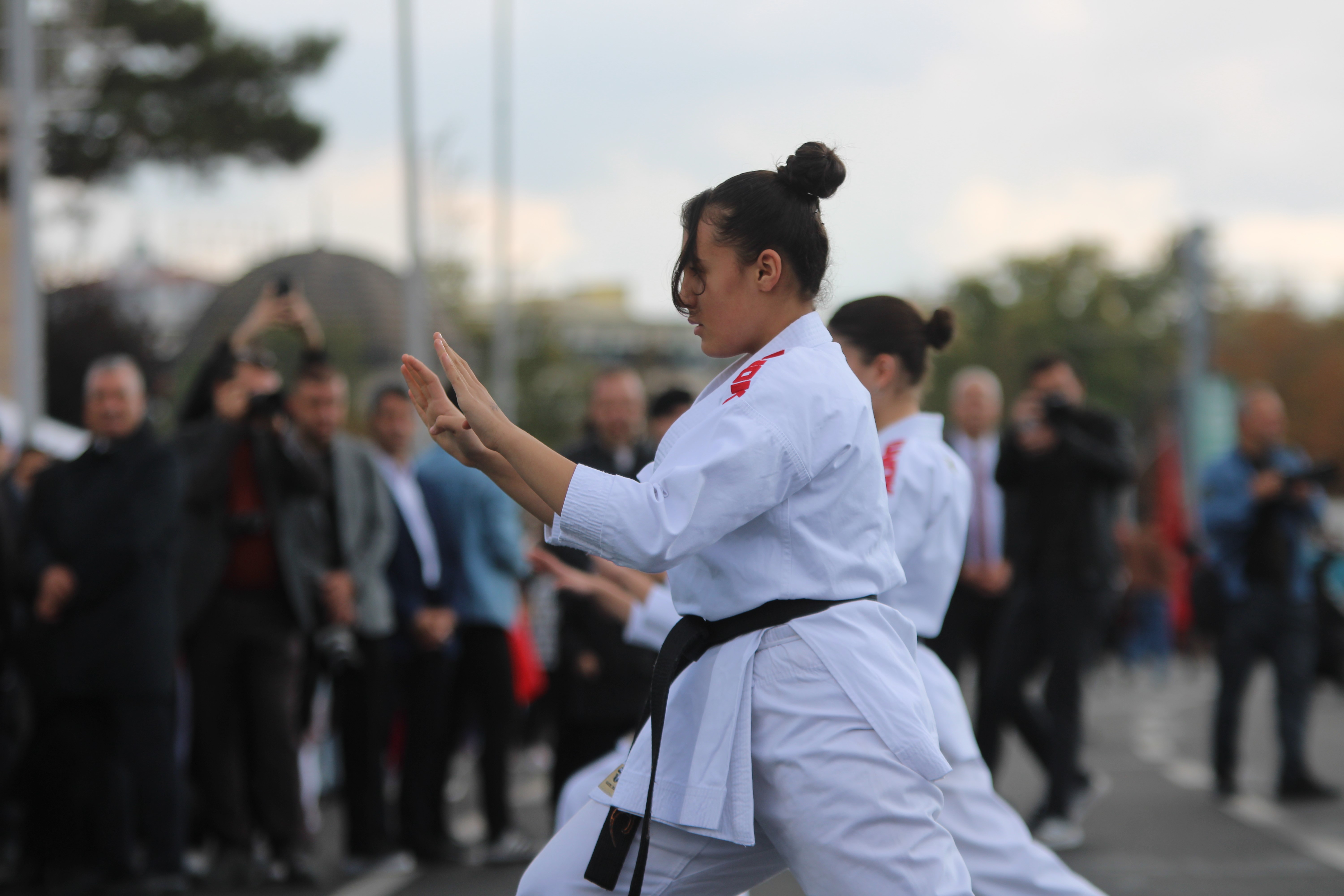 Kayseri'de 29 Ekim Cumhuriyet Bayramı dolayısıyla düzenlenen kutlama programında, Jandarma Genel Komutanlığı'na bağlı ‘Çelik Kanatlar' ekibi tarafından üzüm salkımı gösterisi yapıldı. Kayseri Valisi Gökmen Çiçek'in makamında tebrikleri kabulü ile başlayan program, Cumhuriyet Meydanı'nda devam etti. Saygı duruşunda bulunulması ve İstiklal Marşı'nın okunmasının ardından başlayan programa Kayseri Valisi Gökmen Çiçek, Kayseri Büyükşehir Belediye Başkanı Memduh Büyükkılıç, AK Parti Kayseri milletvekilleri Dursun Ataş, Sayın Bayar Özsoy, Ayşe Böhürler, protokol üyeleri ve vatandaşlar katıldı. Programda geleneksel halk oyunları ve spor gösterileri düzenlendi.