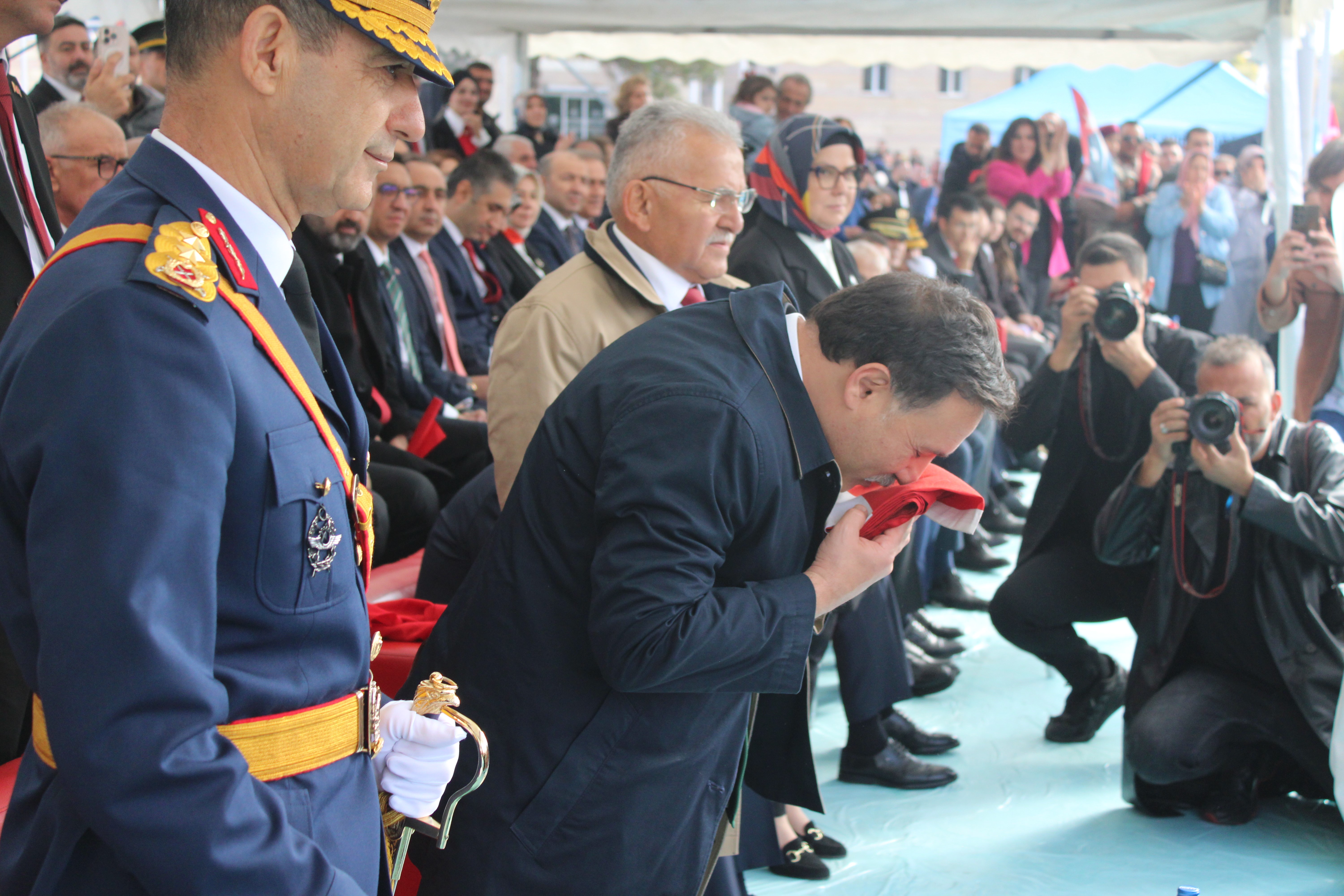 Cumhuriyet Meydanı'nda yapılan programda konuşan Kayseri Valisi Gökmen Çiçek " Bizim tarihimizde tek bir kara leke yoktur. Biz 3 kıtaya hükmederken diller, dinler kültürler özgürce bağımsızca insanların yaşamasına müsaade ettik. Bugün diller, dinler ve kültürler hala hayattadır. Bizim her yıkılışımızda veya yükselişimizde hiçbir utanılacak sahne bu milletin geçmişinde olmamıştır. 102 yıl önce kap karanlık zamanlar yaşadık. 4 bir yandan ülkemizi bölmek saldırdılar. Vatanımızın dört bir yanı işgal altındaydı. Karanlık zamanlardı, milletimiz yorgun düşmüştü. Gazi Mustafa Kemal Atatürk milletiyle kenetlenerek; köy köy, mahalle mahalle, sokak sokak, şehir şehir bağımsızlık meşalesini yakarak. Milletiyle el ele karanlıkları yıkarak milletimizi aydınlığa çıkardı. Biz bu coğrafyaya diz çökmek için değil, dimdik ayakta durmak için yemin ettik. Her şeye rağmen bu coğrafyada hep var olacağız. Sadece kendimiz için değil kendimiz içinde var olacağız. Sevgili gençler sizler bizim umudumuzsunuz, ümidimiz, geleceğimizsiniz, kızıl elmamızsınız sizler düşer ya da yıkılarsanız milletimizin geleceği yıkılır. Ben bu duygularla başta Mareşal Gazi Mustafa Kemal Atatürk olmak üzere, tüm şehitlerimizi ve gazilerimizi rahmetle anıyor herkese saygılar sunuyorum" dedi.