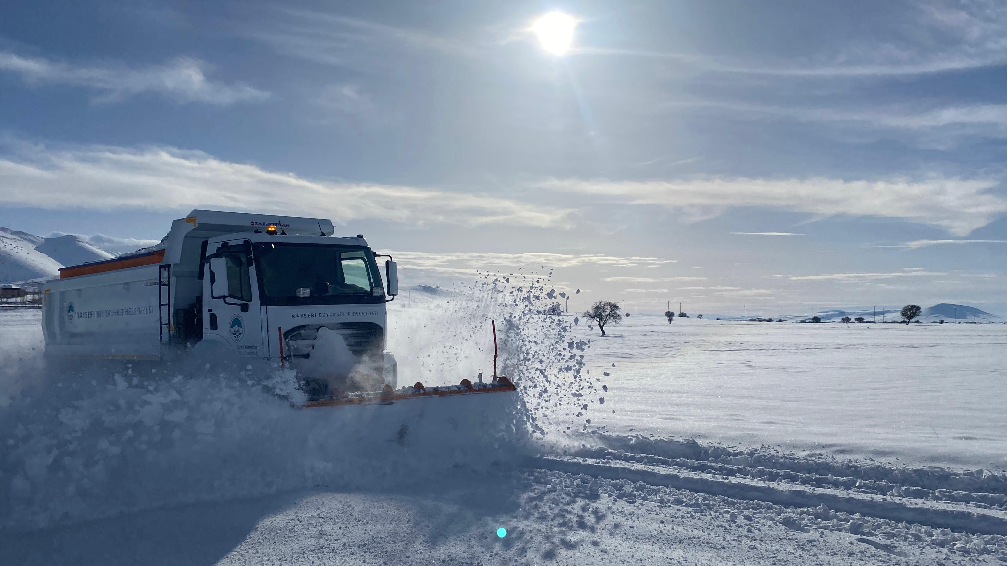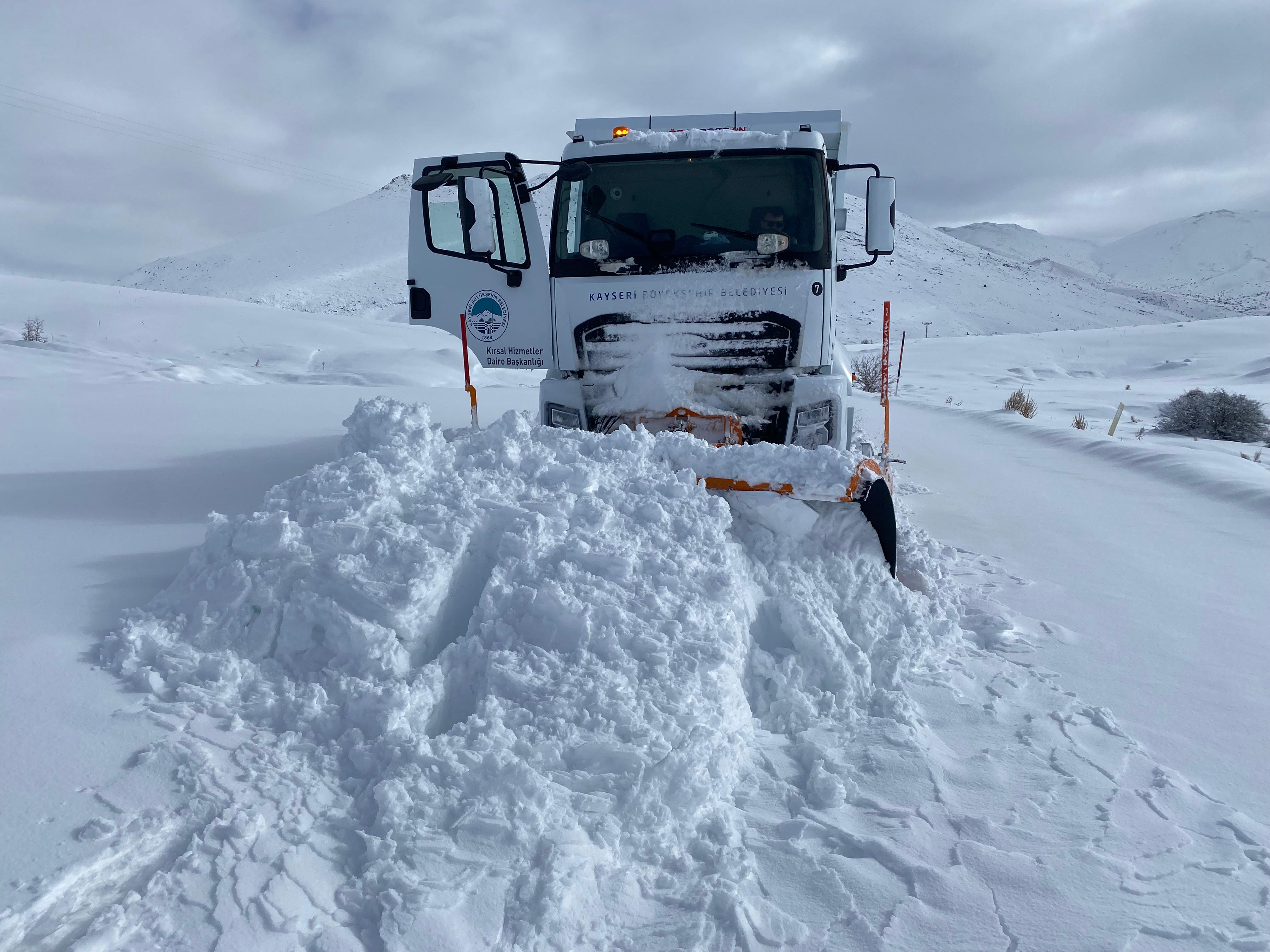 Kayseri Büyükşehir Belediyesi; etkili olan kar yağışı ve tipi nedeniyle kapanan 333 kırsal mahalle yolunu gece gündüz demeden 24 saat esasına göre yürüttüğü çalışmalarla yeniden ulaşıma açarak, kapalı kırsal mahalle yolu bırakmadı. Şehir merkezi ve kırsalda toplam 421 personel, 156 araçla sahada görev yapıyor.