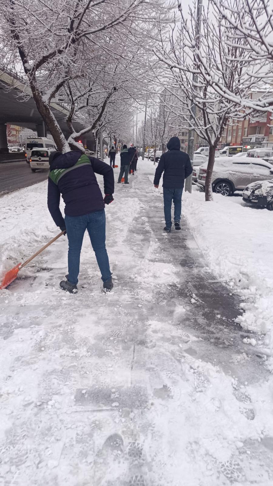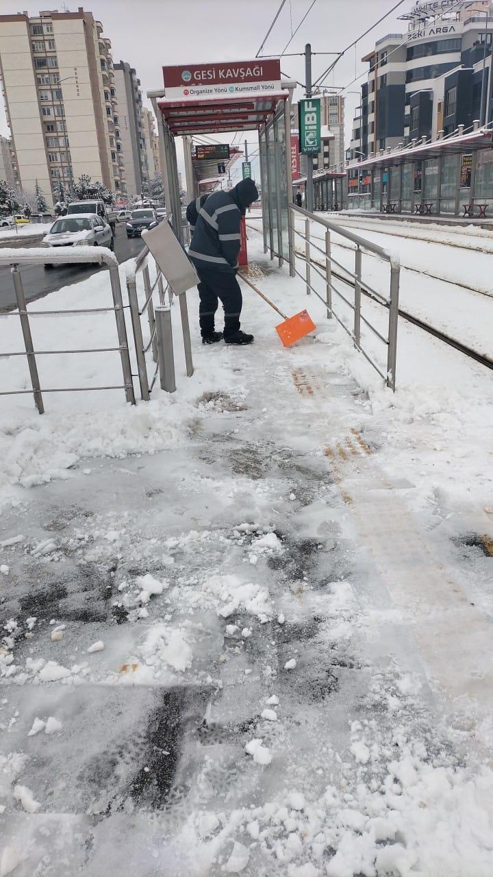 Yaya Güvenliği ÖncelikliPark ve Bahçeler Daire Başkanlığı ekipleri de 72 personel ile yaya yolları, kaldırımlar, üst geçitler, durak çevreleri ve kamusal alanlarda kar temizliği çalışmalarını titizlikle yürüttü. Özellikle buzlanma riski bulunan bölgelerde tuzlama çalışmaları yapılarak, vatandaşların günlük yaşamlarını güvenli şekilde sürdürebilmeleri hedeflendi.Vatandaşların güvenli ve kesintisiz ulaşımını sağlamak amacıyla şehir merkezi ve kırsal mahallelerde Fen İşleri, Kırsal Hizmetler ile Park ve Bahçeler Daire Başkanlıklarına bağlı ekipler olmak üzere toplam 421 personel ve 156 araç sahada görev yapıyor. Kayseri Büyükşehir Belediyesi, kış şartlarının etkisini sürdürdüğü günlerde de vatandaşların günlük yaşamının aksamaması ve ulaşım güvenliğinin sağlanması amacıyla kış çalışmalarını kararlılıkla sürdürmeye devam ediyor.