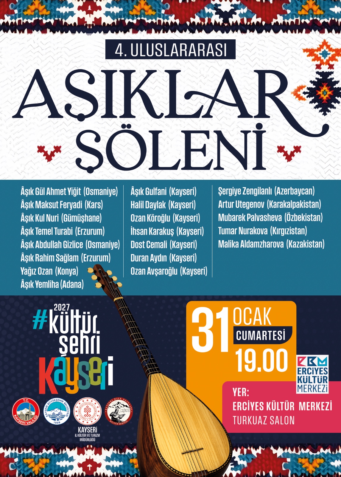 Türkiye’nin farklı illerinin yanı sıra Azerbaycan, Özbekistan, Kırgızistan, Kazakistan ve Karakalpakistan’dan gelen usta âşık ve ozanların katılacağı şölen, sazın ve sözün evrensel diliyle kültürler arası bir buluşmaya sahne olacak. Programda Anadolu’nun güçlü âşık geleneğini temsil eden isimlerle birlikte Türk dünyasının önemli sanatçıları da yer alacak.