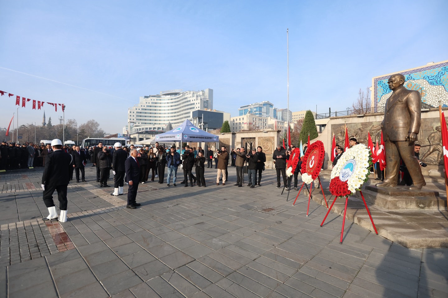“Kayseri Güçlenirse, Türkiye Güçlenir”Gazi Mustafa Kemal Atatürk’ün Cumhurbaşkanı olarak da defalarca ziyaret ettiği Kayseri’nin, Tayyare Fabrikası’yla sanayinin, Kayseri Lisesi’yle eğitimin, Talas’ı ve Hunat’ıyla ilmin ve medeniyetin merkezlerinden biri hâline gelmiş olduğunu dile getirerek, sözü günümüze getirdi. Büyükkılıç, bugün Kayseri’nin Cumhurbaşkanı Recep Tayyip Erdoğan’ın liderliğinde, sanayisiyle üreten, tarımıyla güçlenen, eğitimiyle gelişen ve teknolojisiyle geleceğe yön veren Türkiye Yüzyılı’nın öncü şehirlerinden biri olmayı sürdürdüğüne işaret ederek, “Bizler, çağdaş uygarlık hedefinden sapmadan, Cumhuriyetimizin temel değerlerine sahip çıkarak Kayseri’yi daha güçlü yarınlara taşımak, yerel yönetimler olarak gençlere güven aşılayacak anlayış içerisinde şehrimize yakışanı yapmakta kararlıyız. Çünkü çok iyi biliyoruz ki; Kayseri güçlenirse, Türkiye güçlenir” diye konuştu.