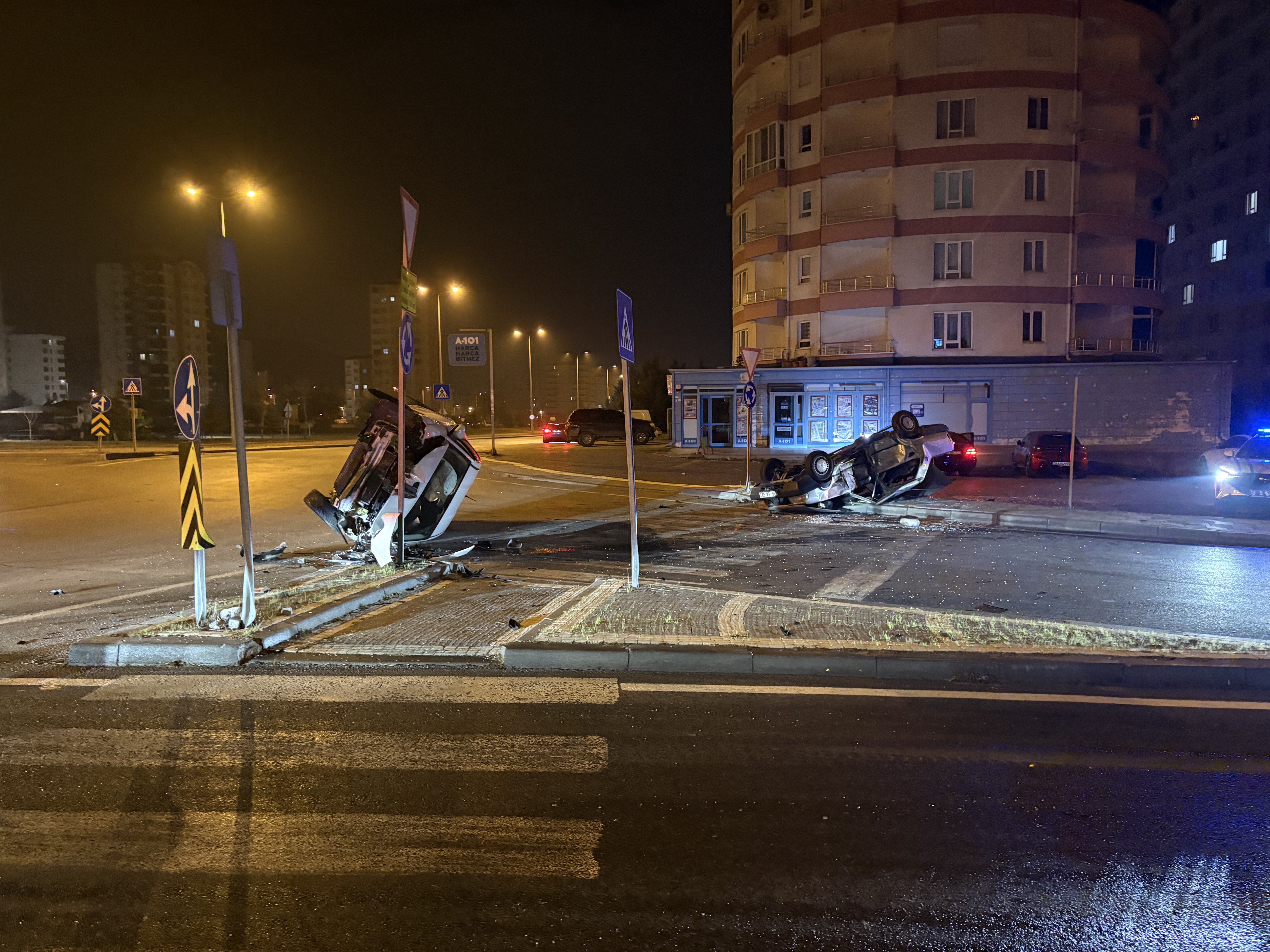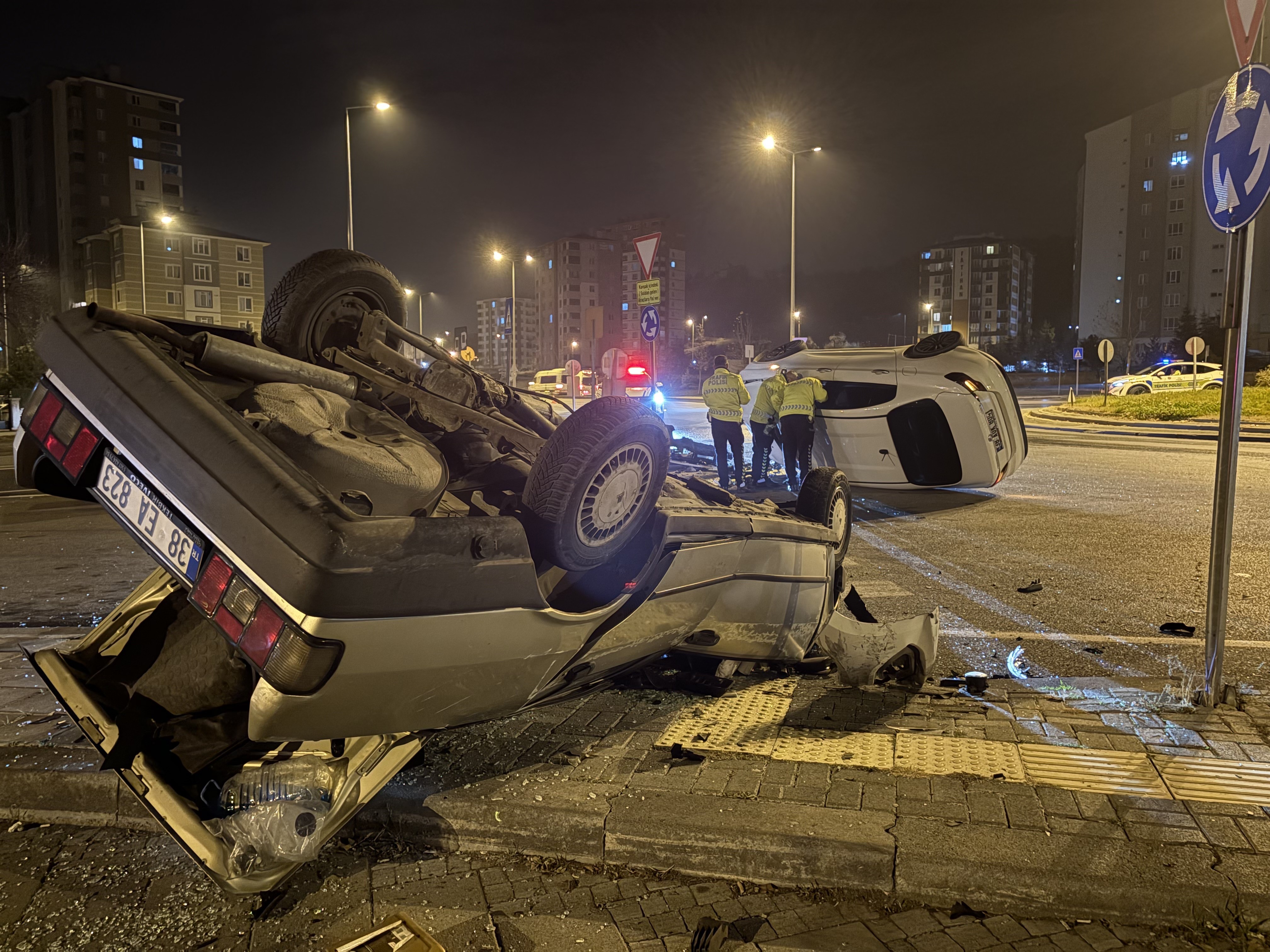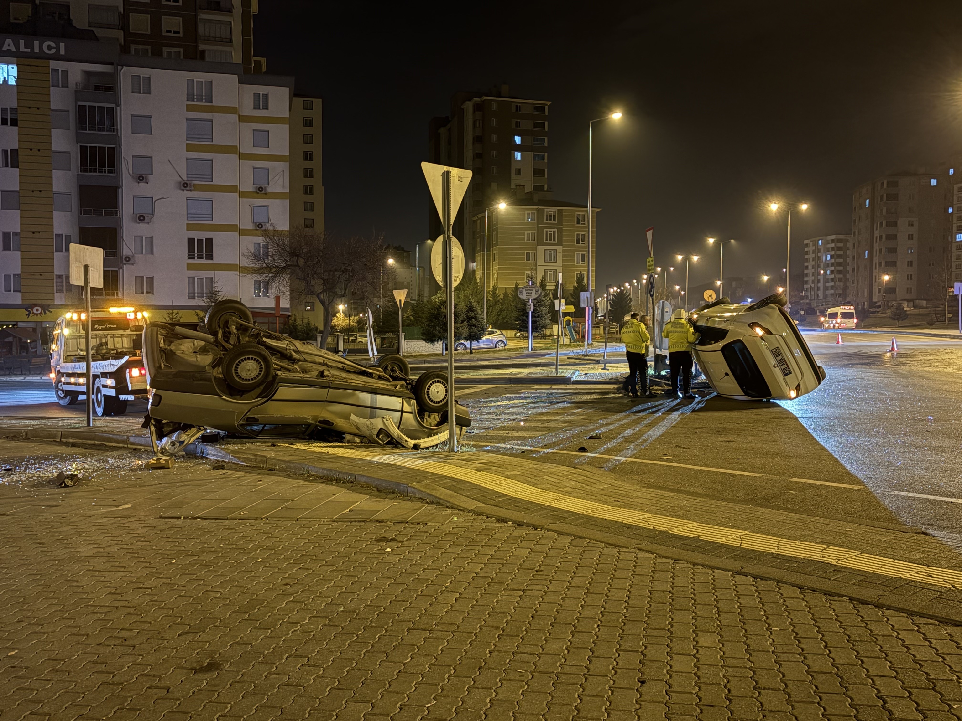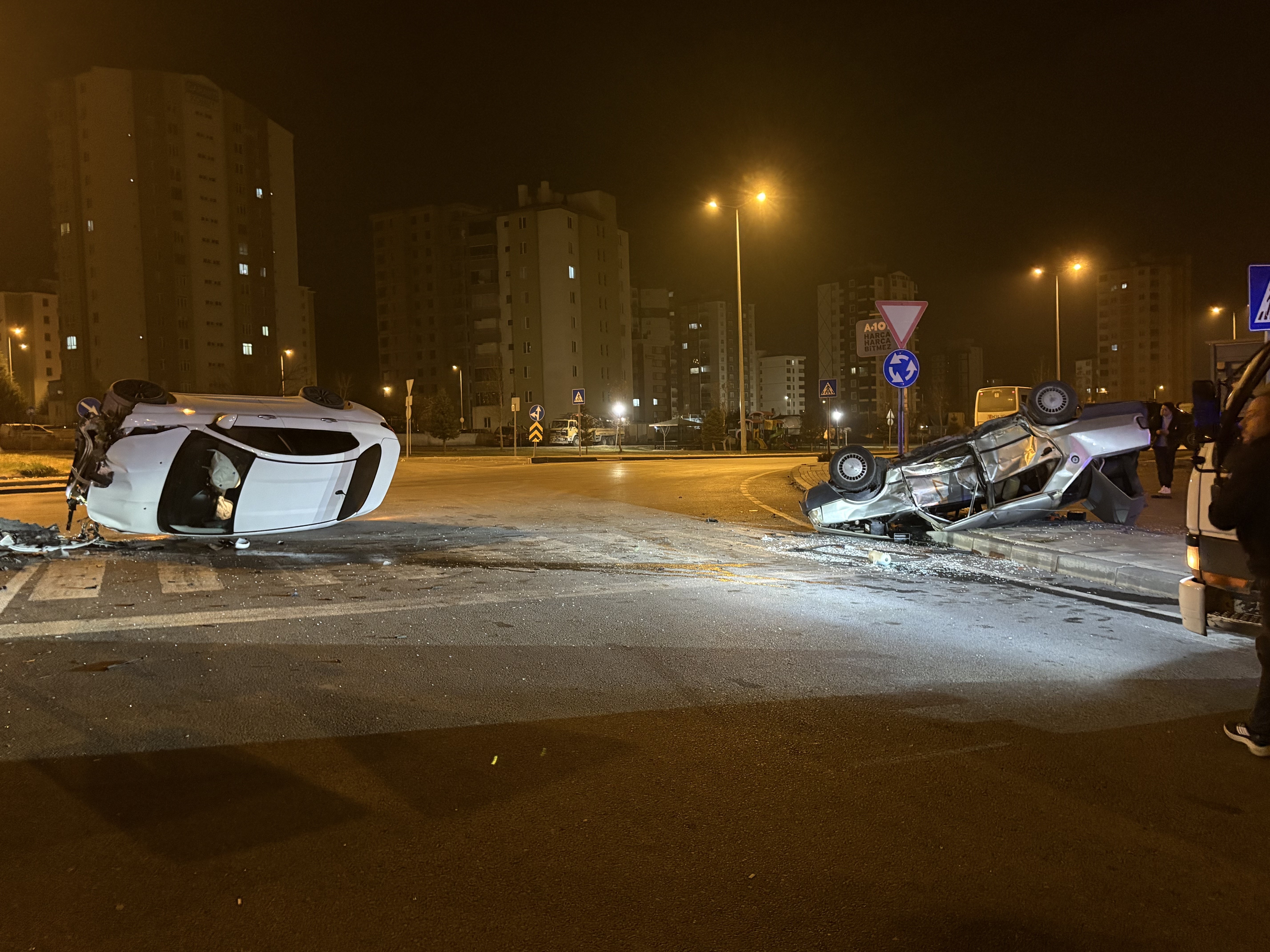 Kayseri’nin Melikgazi ilçesinde kavşakta meydana gelen trafik kazasında, otomobillerden biri yan yatarken, diğeri de takla attı. Kazada 2 sürücü yaralandı.