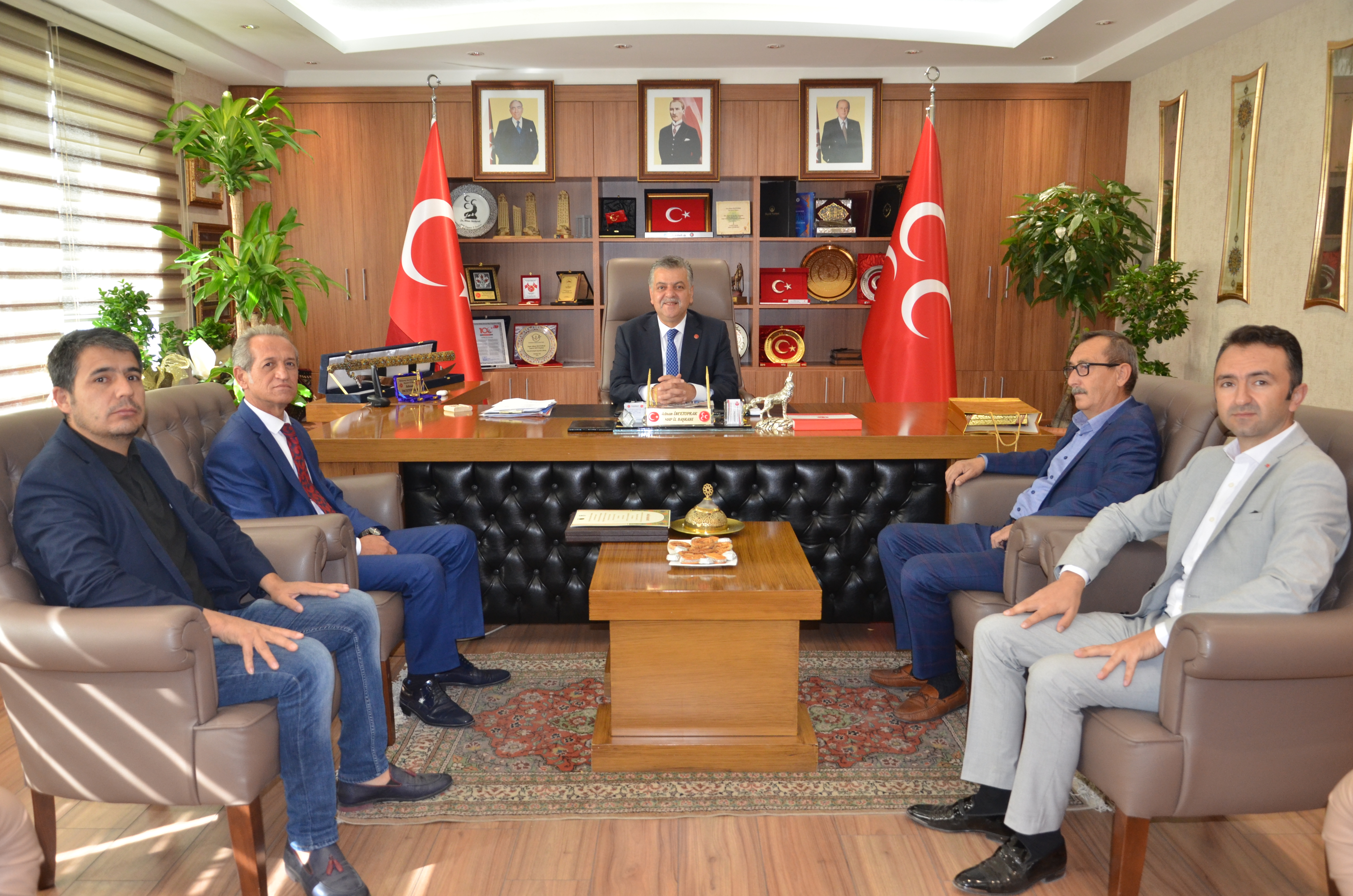 Kayseri Esnaf ve Sanatkârlar Derneği (KESADER) Genel Başkanı Kemal Erçalık ve yönetimi, MHP İl Başkanı Adnan İncetoprak'a hayırlı olsun ziyaretinde bulundu.
