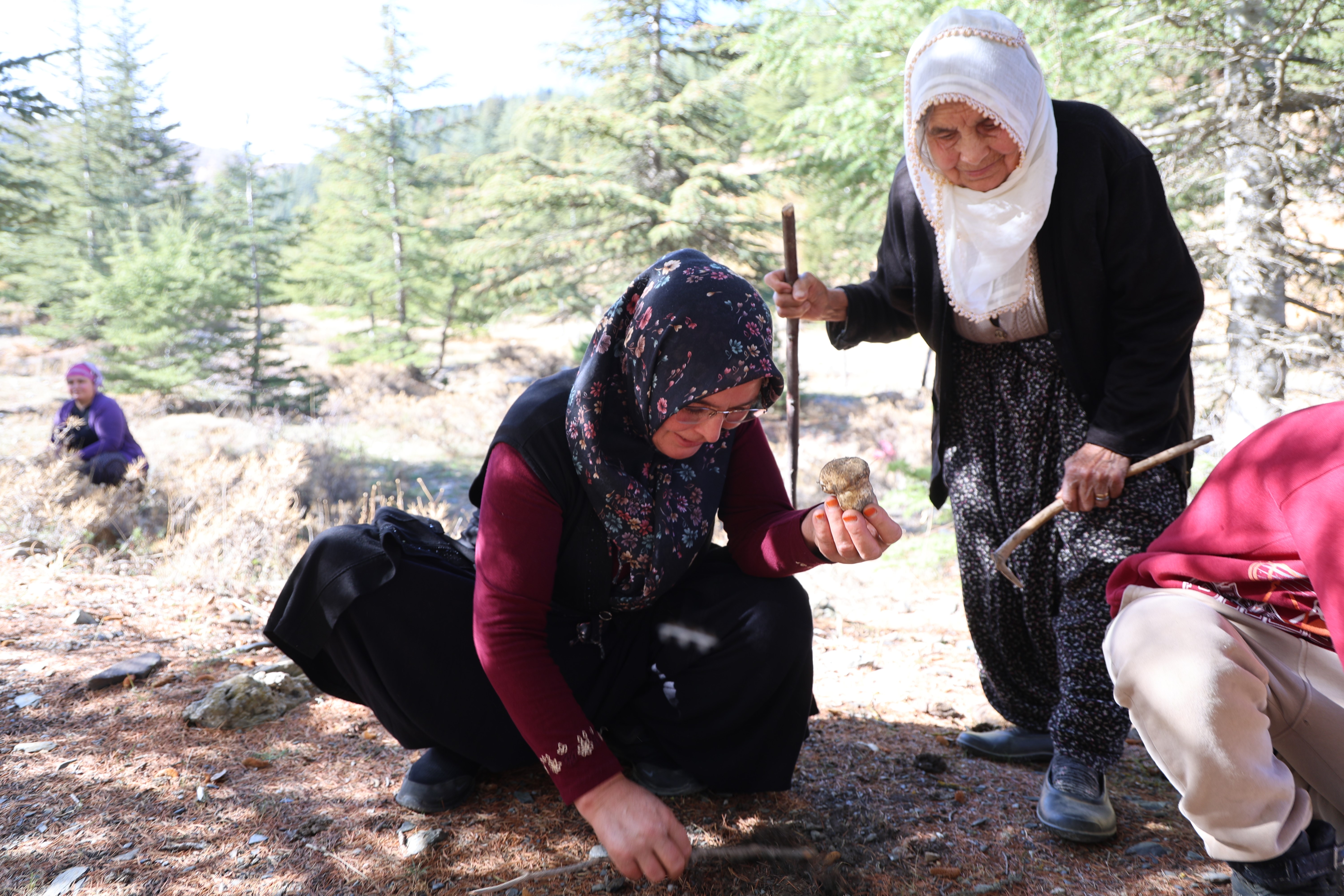Sabah ezanıyla birlikte ormana gidip öğle namazına kadar mantar topladığını anlatan 85 yaşındaki Sanem Gündoğdu, "Dağdan topluyorum, satıyorum, evime katkı oluyor" derken Raziye Gündoğdu da sedir ağaçlarının gölgesinde mantar arayarak elde ettiği gelirle ev ekonomisine destek verdiğini ifade etti.