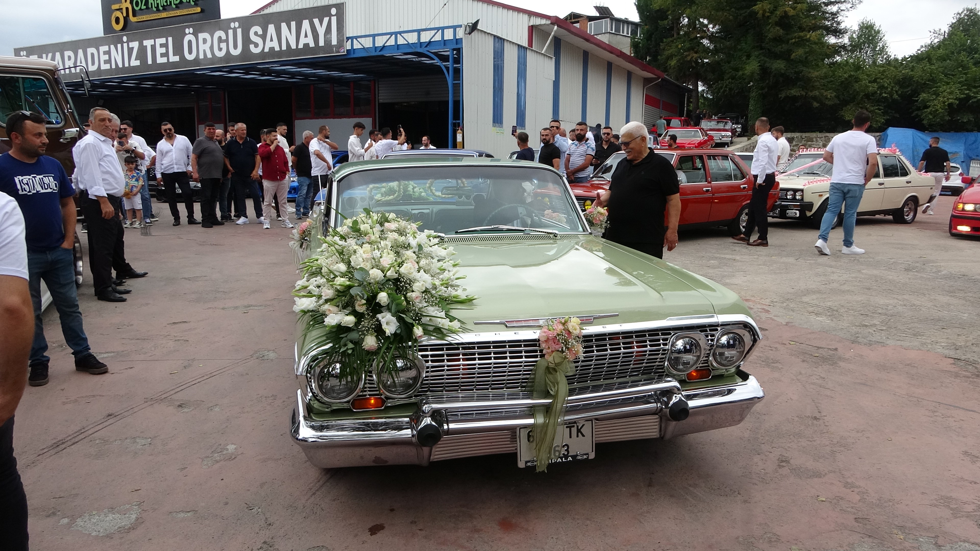 Düğün sebebiyle böyle bir organizasyon düzenlediklerini belirten damat Gökhan Değermenci, "Düğünümüz sebebiyle Türkiye'nin dört bir yanından dostumuz, arkadaşımız klasik araçlarıyla buraya geldi. İstanbul, Ankara, Kayseri, Balıkesir ve tüm Karadeniz Bölgesi'nden araçlar olmak üzere geniş bir topluluk şu anda burada. Klasik otomobil çocukluğumdan beri benim için var olan bir tutku. Yaklaşık 10 adet kendimize ait klasik otomobilimiz var. İmpala'lar, Magirus'lar ve Tofaş grubu araçlarımız mevut. Burada şu an sayamayacağım kadar araç var. Gelen tüm dostlarımın hepsinin ayağına sağlık" dedi.
