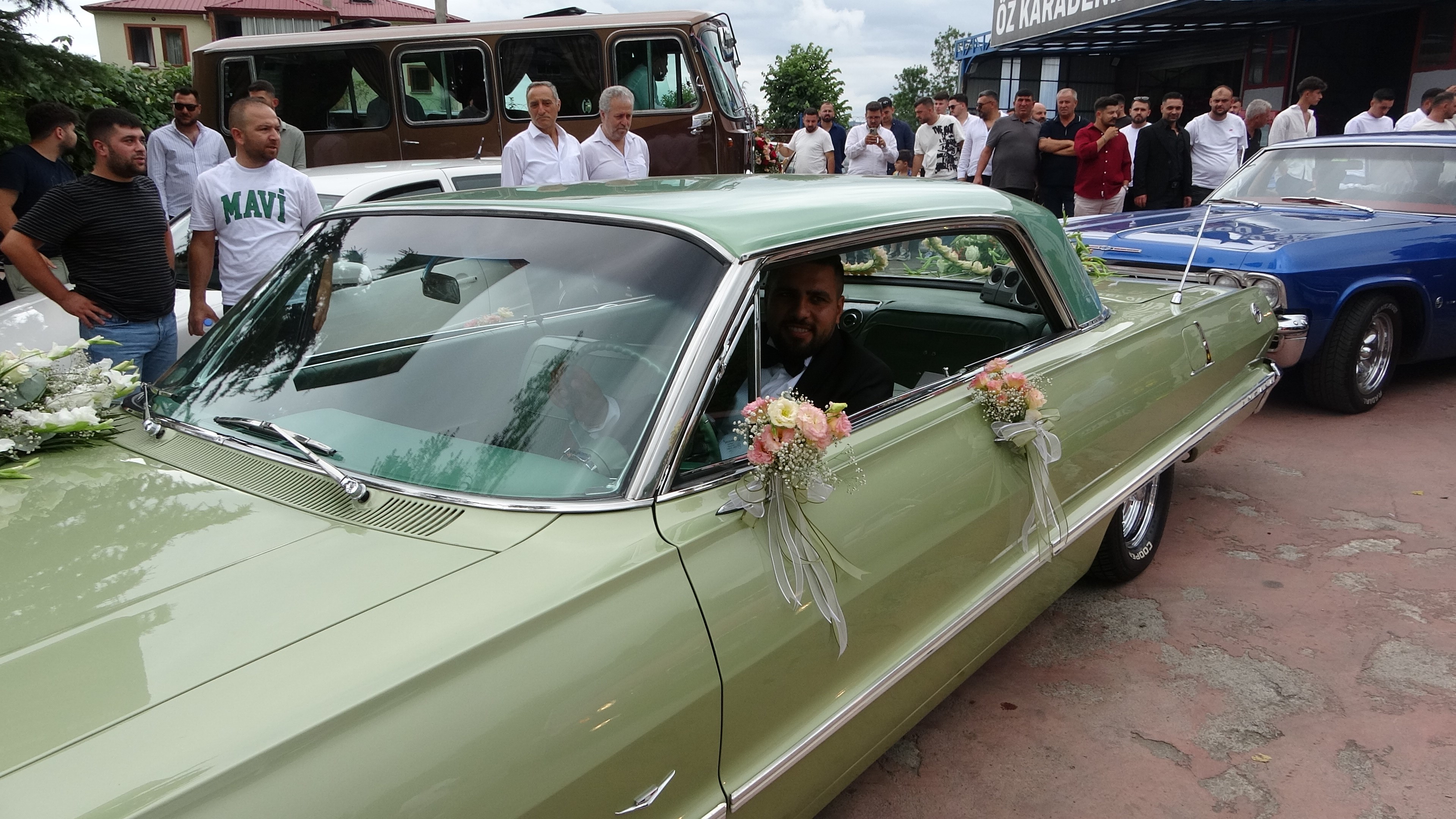 Trabzon'da klasik araçlardan oluşan düğün konvoyu görenleri hayran bıraktı.