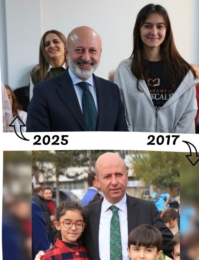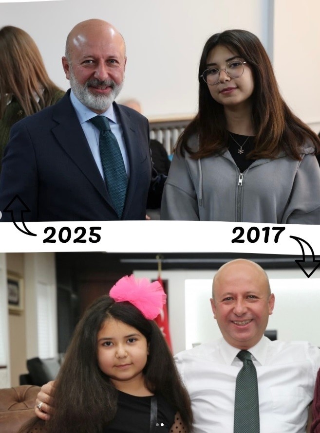 Sahabiye Mahallesi’ndeki Nuh Mehmet Küçükçalık Anadolu Lisesi ziyaretinde iki öğrencinin 8 yıl önce birlikte çekilen fotoğrafı Başkan Çolakbayrakdar’a göstermesi, yüzünde sıcak bir tebessüm oluşturdu.