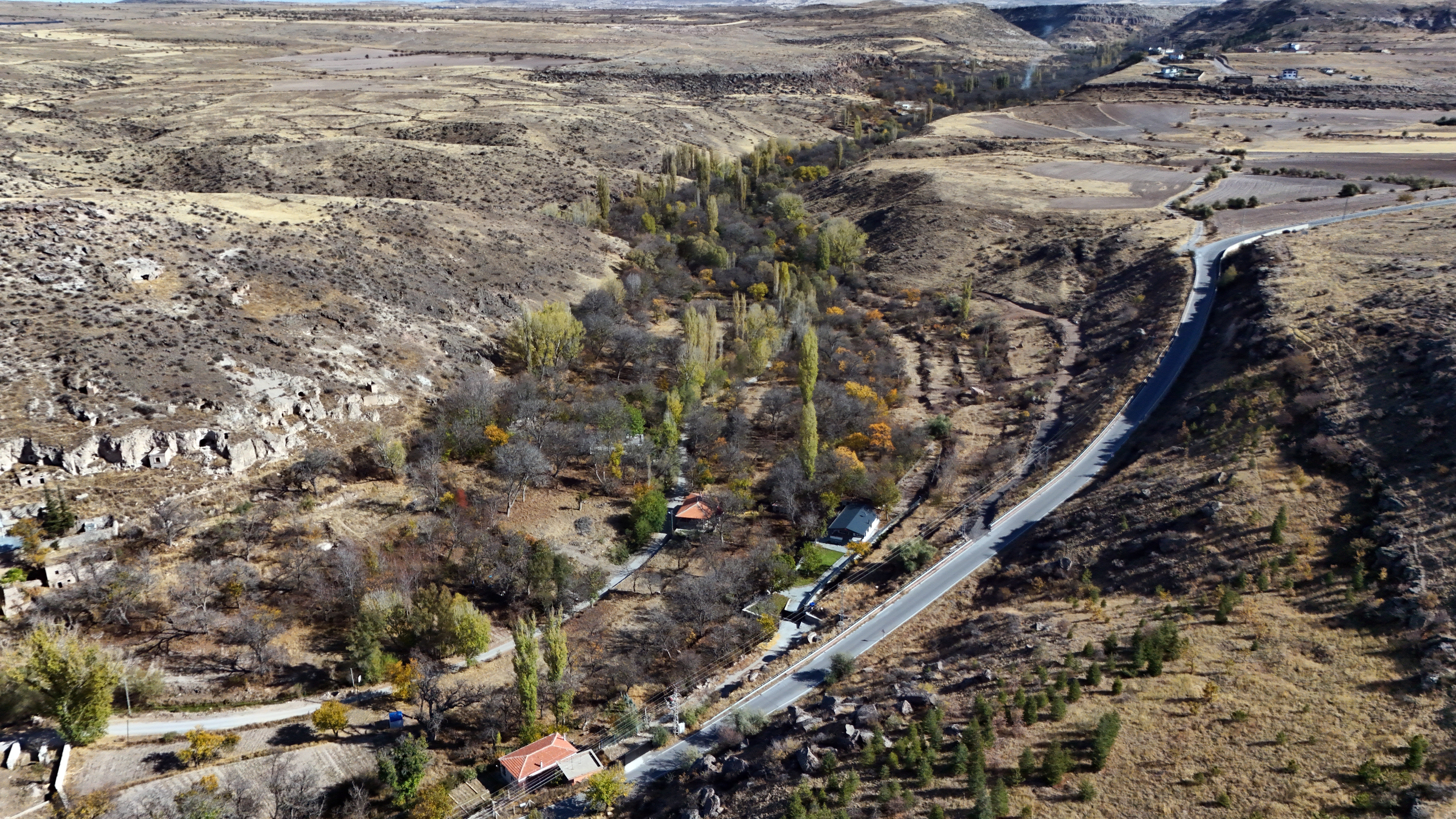 Kayseri'deki Koramaz Vadisi'nde sonbahar ile birlikte farklı renklere bürünen ağaçların oluşturduğu renk cümbüşü görenleri büyülüyor.