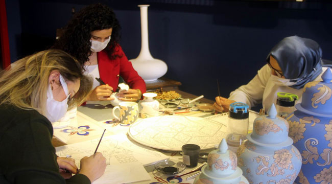 İş yeri kurulumu aşamasında ailesinden de büyük destek aldığını dile getiren Akkoca, "Ürünlerin fiyatlandırılması tamamen desene göre oluyor. Çünkü ortada bir el emeği var. Ciddi bir desen aşaması sonrasında tahrir aşaması var. Eğer fincan üretiyorsanız, günde 5 adet üretebilirsiniz. Zaten en ucuz ürünümüz de fincanlarımız oluyor. Bu işi çok istiyordum. Ailemle uzun bir ikna aşaması oldu. Her zamanki gibi bana destek oldular. Onların güvenleri ve desteği sayesinde de markamızı kurmuş olduk" şeklinde konuştu.