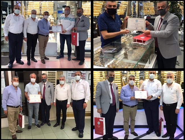 Kayseri Ticaret Odası tarafından Ömer Gülsoy imzalı yeni belgeleri sahiplerine ulaştıran Kayseri Sarraflar ve Kuyumcular Dernek Başkanı Adnan İncetoprak’ta ’’Kayseri’mizin misafir odası olan Kazancılar Çarşısı’nda esnaflık yapan, sarraf ve kuyumcu arkadaşlarımıza hayırlı işler dileyerek Kayseri’nin en büyük Sivil Toplum Kuruluşlarından birisi olan Kayseri Ticaret Odası’nın 2020 yılı yeni dönem üyelik belgelerini ulaştırdık. “ açıklamasında bulundu.