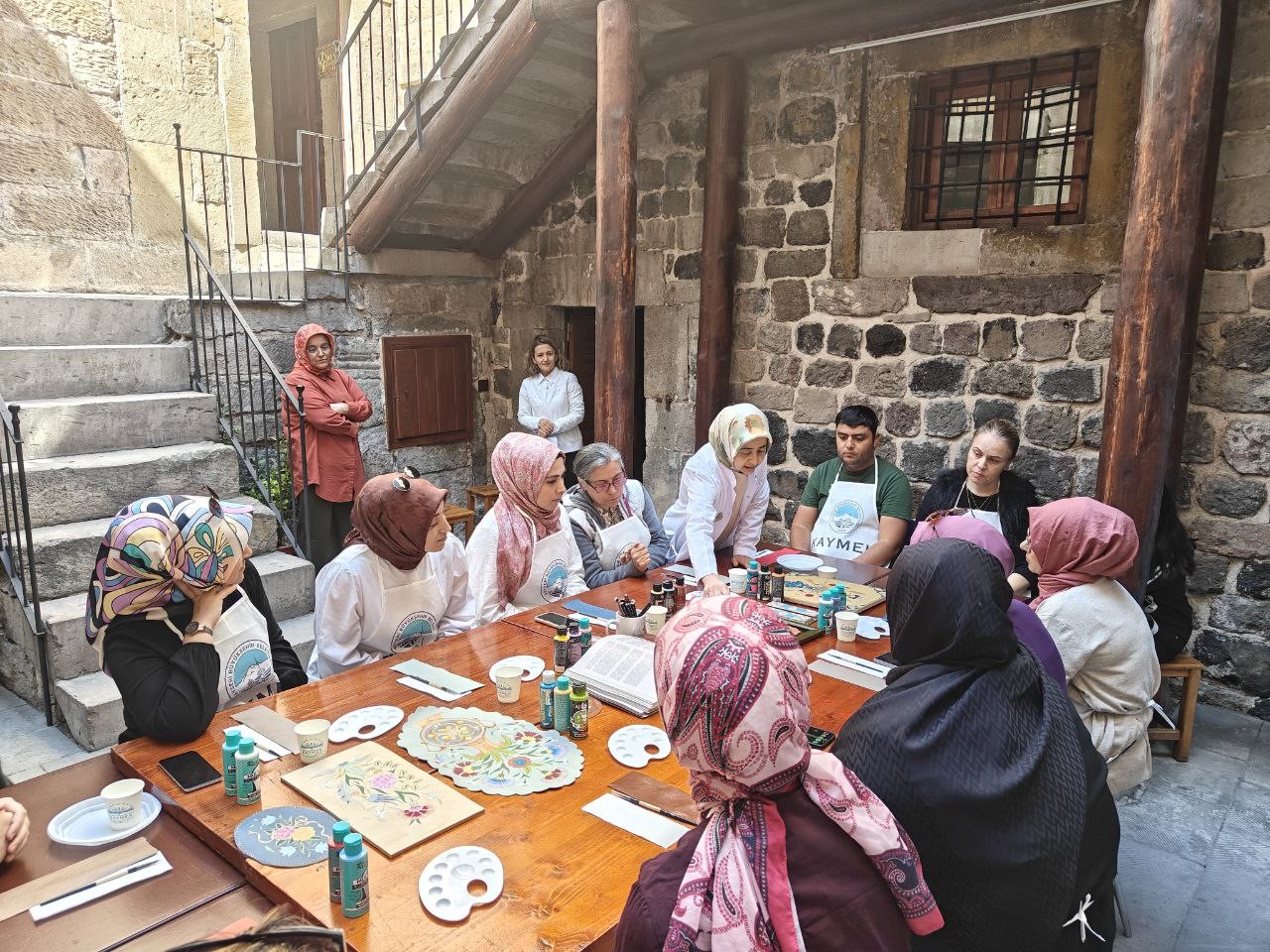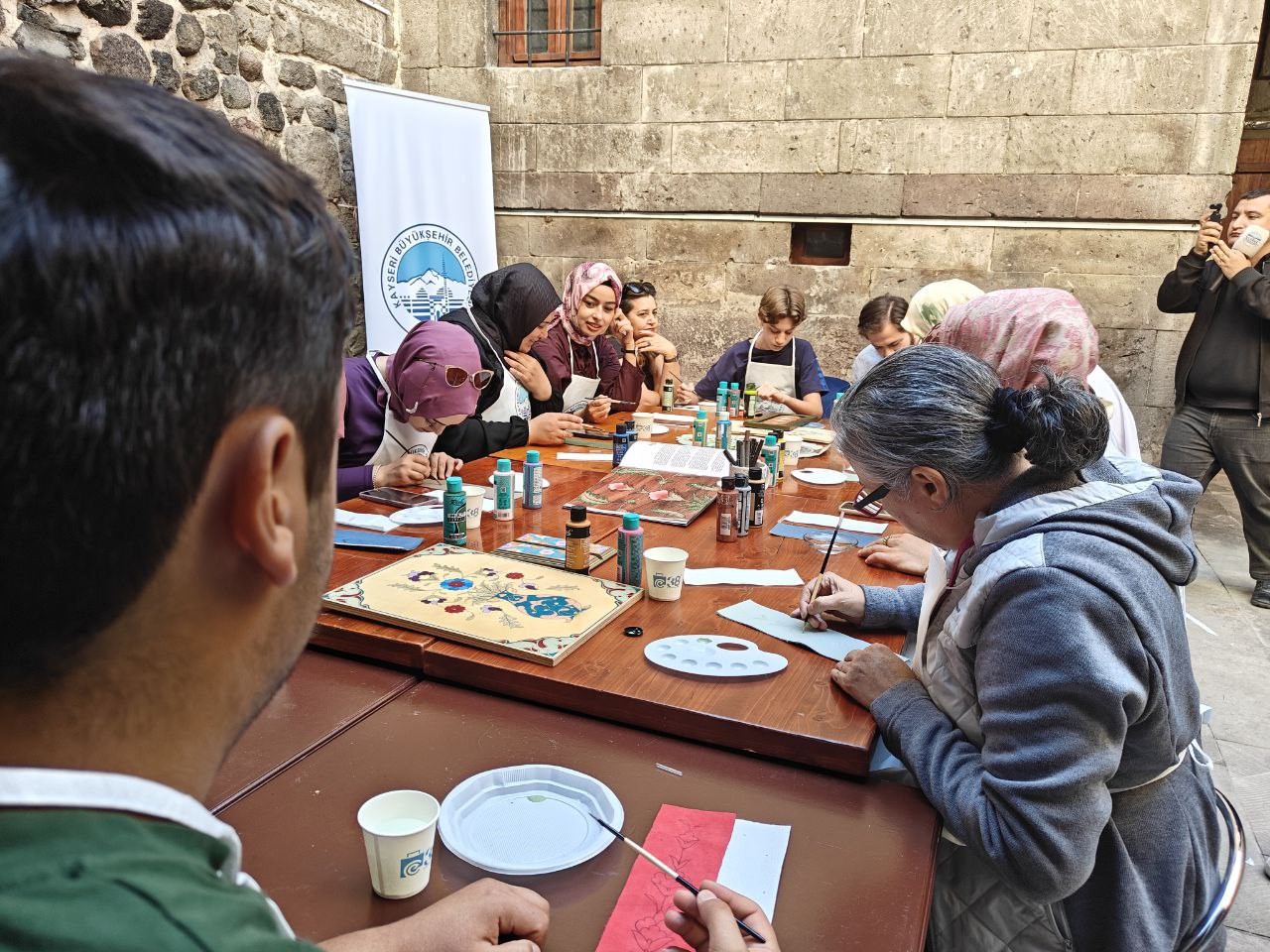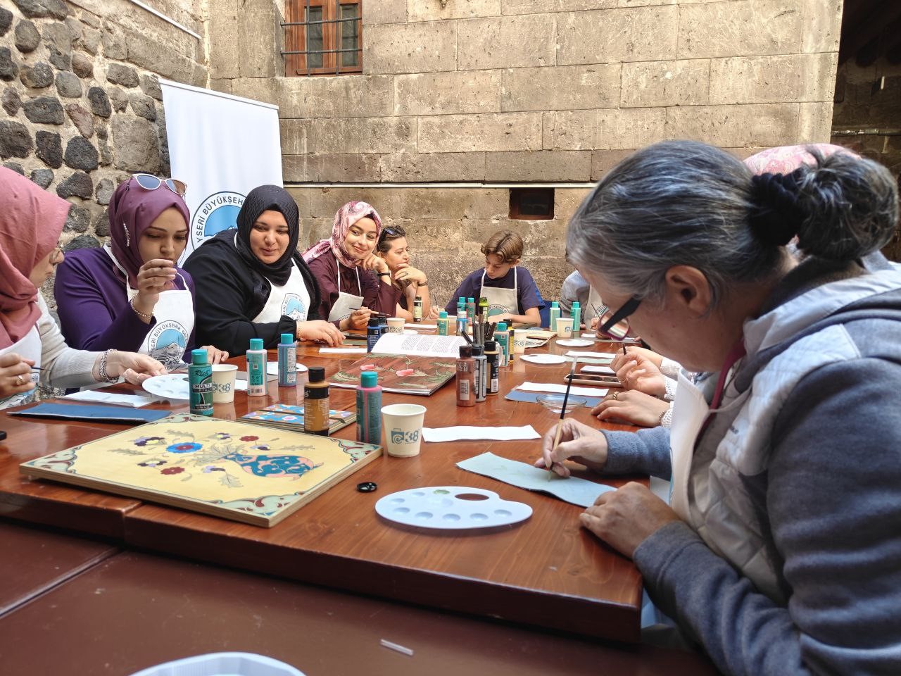 Kayseri Büyükşehir Belediyesi bünyesinde hizmet veren Kayseri Mesleki Eğitim ve Kültür A.Ş. (KAYMEK) tarafından düzenlenen Edirnekari Workshop çalışmasına katılan kursiyerler, geleneksel motifleri deri üzerine işledi.