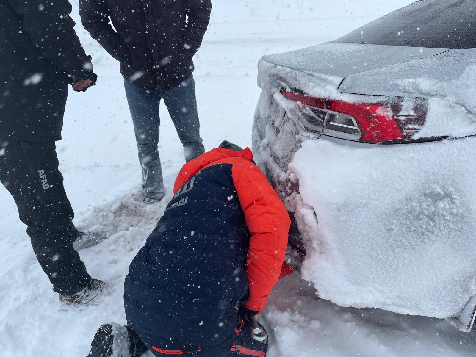 Kayseri'de kar yağışı sonrası araçlarıyla yolda mahsur kalan vatandaşlar, ekiplerin çalışmaları sonucu kurtarıldı.