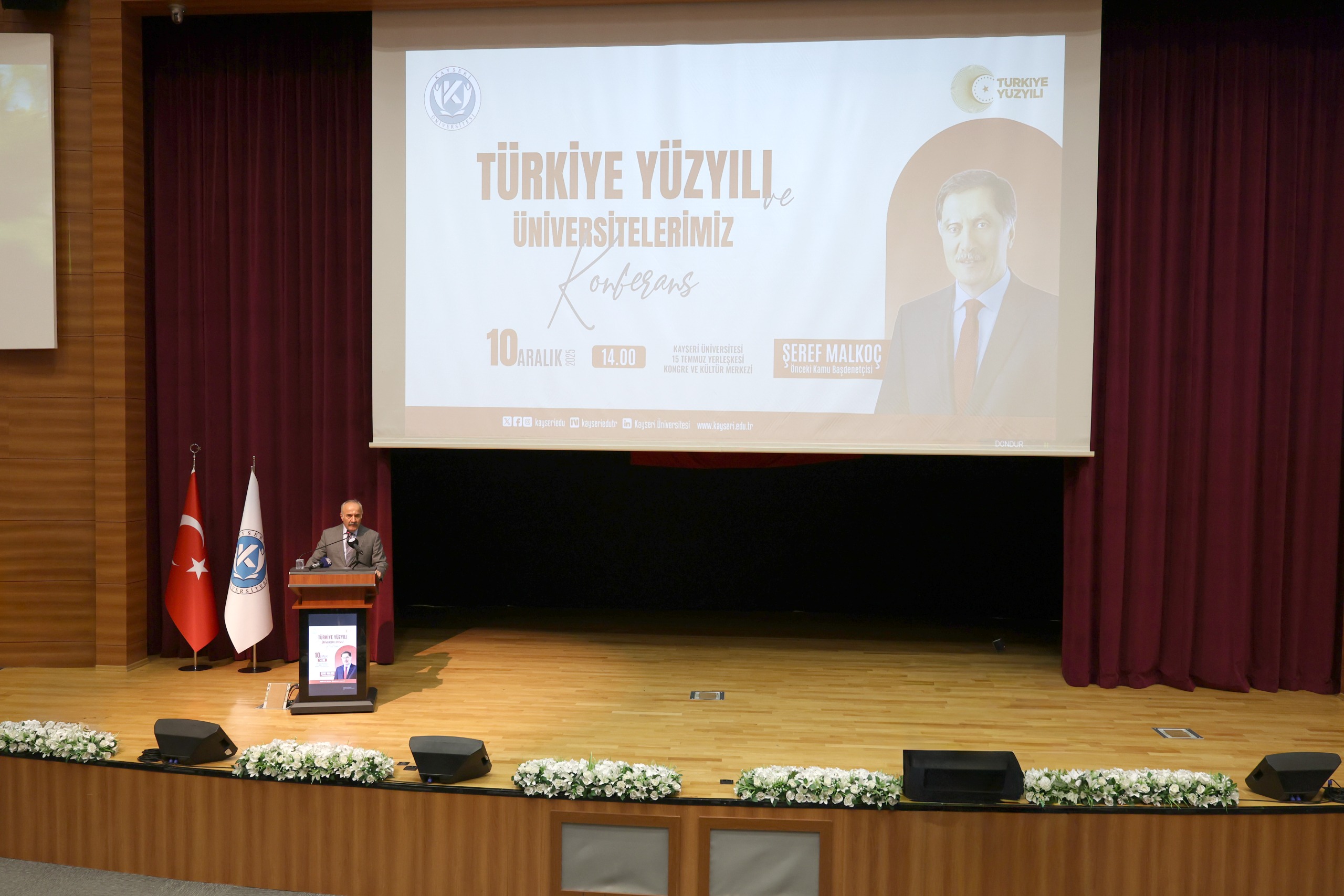 TBMM 20. ve 21.’inci Dönem Trabzon Milletvekili, Hukukçu ve Önceki Dönem Kamu Başdenetçisi Şeref Malkoç, Kayseri Üniversitesi’nde “Türkiye Yüzyılı ve Üniversitelerimiz” konulu konferans verdi.