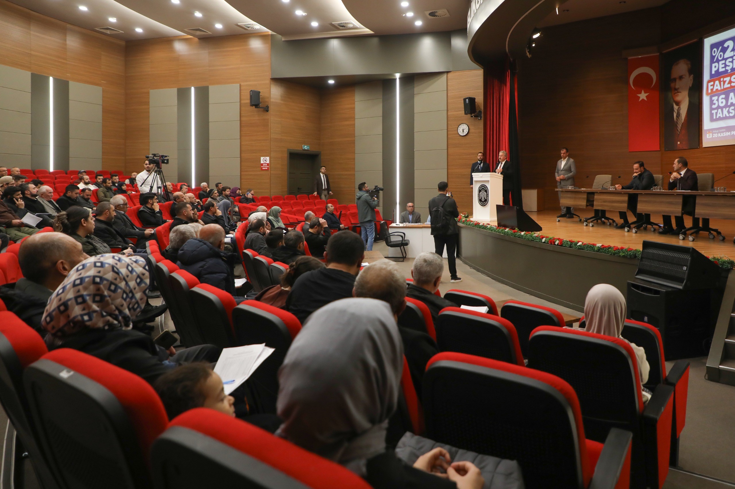 "Birçok vatandaşımız daire alabilmek için bankadan kredi çekme yoluna gidiyordu. Bizler vatandaşımıza %25 peşinat, 36 eşit taksit ve peşin ödemede %30 indirim imkanı sağladık. Vatandaşımızın evine oturup borcunu ödemeye başlamasından zaman geçmesine rağmen peşin ödeme yapması halinde, borcunun kalan kısmından %30 indirim hakkı devam ediyor. Hayırlı olsun. Cenab-ı Allah sağlık, huzur içerisinde oturmayı nasip etsin. Belirli dönemlerde ihalelerimiz devam edecek."