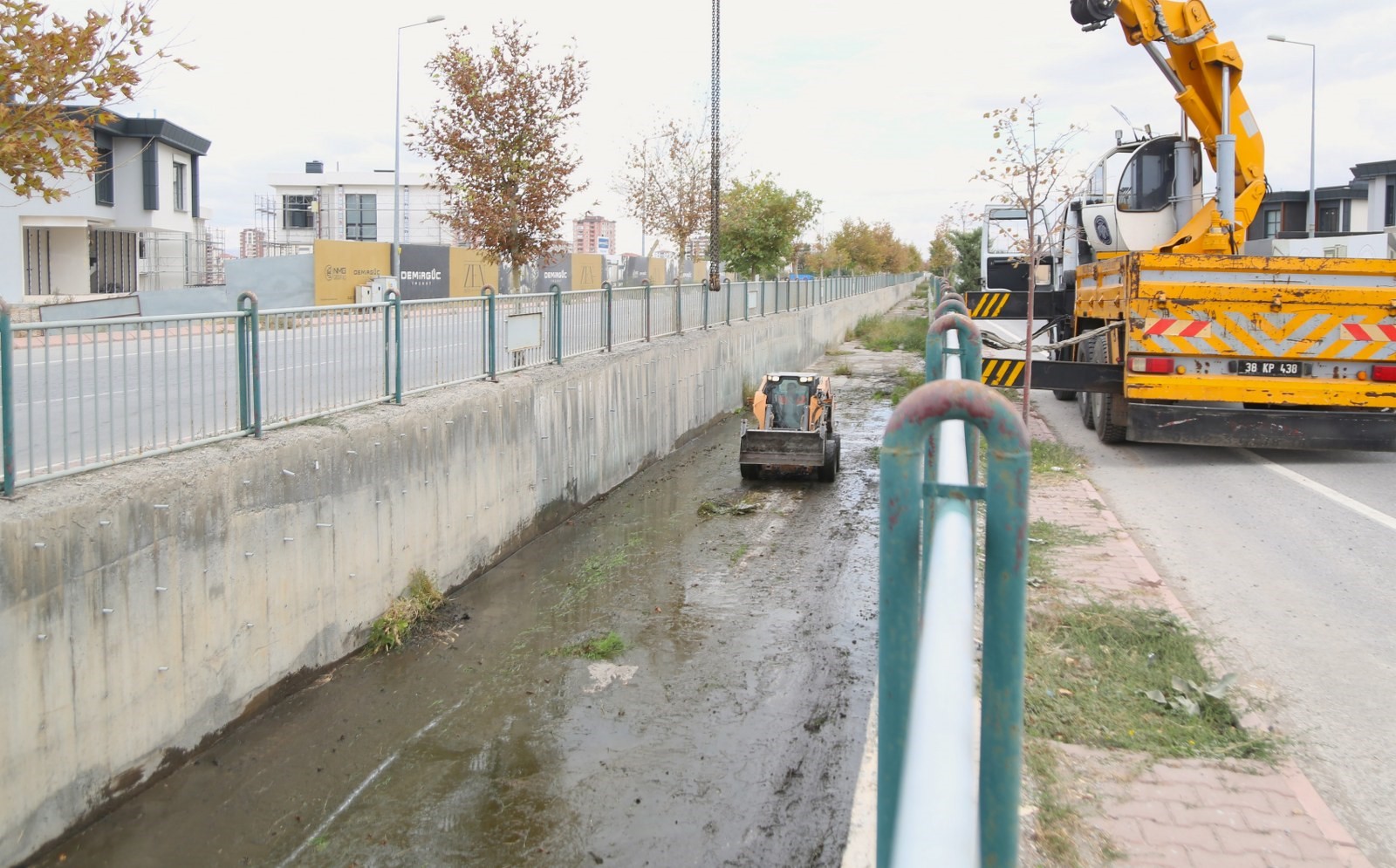 Şiddetli yağışlarda taşkın riskini azaltmak amacıyla ilçedeki taşkın suyu kanallarında temizlik çalışması başlatan Melikgazi Belediyesi; sonbahar yağışlarının başlamasıyla birlikte ilçede bulunan birçok kanalın temizliğini yapıyor.