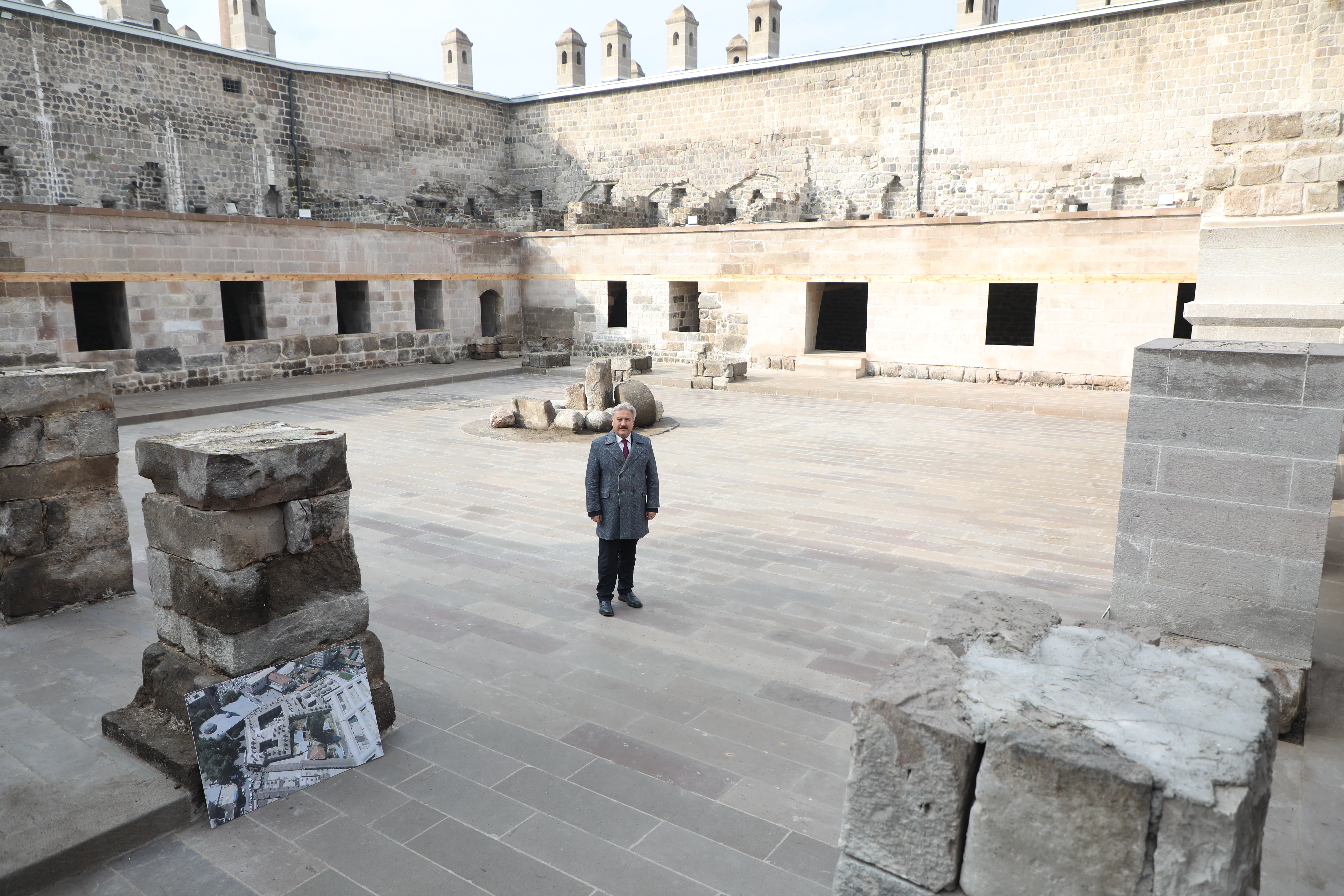 Melikgazi’de yapılan restorasyon çalışmalarıyla ilçenin tarihi ve kültürel kimliğini korunmayı amaçladıklarını söyleyen Melikgazi Belediye Başkanı Doç. Dr. Mustafa Palancıoğlu, "Melikgazi’miz tarihi eserlerin yoğun olduğu bir ilçe. Melikgazi ilçemizde tarihi yapıların restore edilerek günümüz hizmetine sunulması çalışmalarımız büyük bir titizlikle devam ediyor. İlçemizin somut kültürel miraslarından olan konak, han, medrese, türbe ve çeşmelere kadar birçok yapıyı günümüze kazandırıyoruz. Yapmış olduğumuz çalışmalarda kültürel mirasımızı gün yüzüne çıkarılması, gelecek nesillere aktarılması yanında yapılara fonksiyon yükleyerek yeniden işlevlendiriyoruz. Çalışmalarımızla sadece fiziksel yapıların yenilenmesini sağlamakla kalmıyor aynı zamanda bir kentin hafızasının yaşatılmasını da sağlıyoruz. Yapıların mimari dokularını titizlikle korurken, peyzaj ve çevre düzenleme işlemlerini de gerçekleştiriyoruz. Bu doğrultuda yapılan her restorasyon çalışmamız şehrimize ve ilçemize değer katan kalıcı bir hizmet olarak öne çıkıyor. İlçemizde göreve geldiğimiz günden bu yana Gön Han, Köşk Medrese, Suya Kanmış Hatun Türbesi, Dört Ayak Türbesi, Sırçalı Kümbet, Bakkaloğlu Konağı, tarihi çeşmeler gibi birçok yapının içinde yer aldığı 20 adet restorasyon çalışması yaptık. Yapmaya da devam ediyoruz. Restorasyon uzun süren ve özverili bir çalışma. O yüzden emek veren gayretle çalışan tüm mesai arkadaşlarıma teşekkür ederim" dedi.