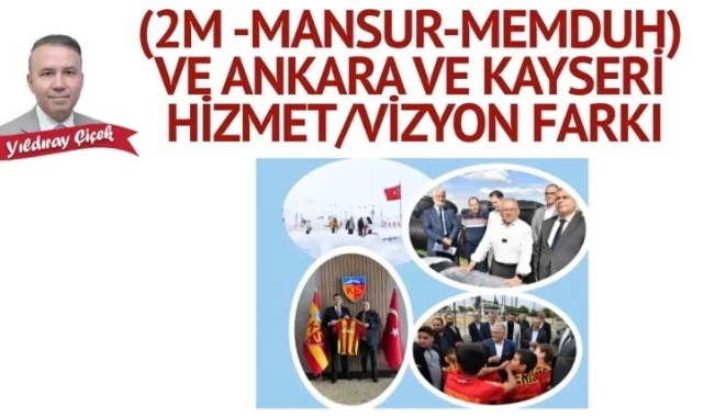 Milliyetçi Hareket Partisi (MHP) Genel Başkan Danışmanı Yıldıray Çiçek; sosyal medya hesabı üzerinden yaptığı ‘(2M-Mansur-Memduh) ve Ankara ve Kayseri Hizmet/Vizyon Farkı’ başlıklı yazı ile iki şehir arasındaki vizyonu kıyasladı.