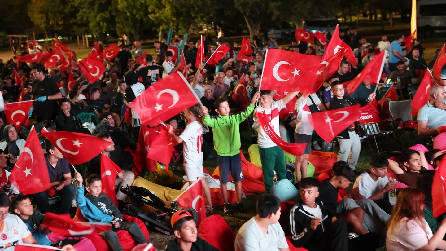 Kocasinan Belediyesi’nin organizasyonuyla vatandaşlar, milli takımın mücadelesini tek yürek olarak takip etti ve unutulmaz anlara imza attı. Tezahüratlar eşliğinde millilere destek veren vatandaşlar, milli heyecanı tek yürek olarak yaşadı.