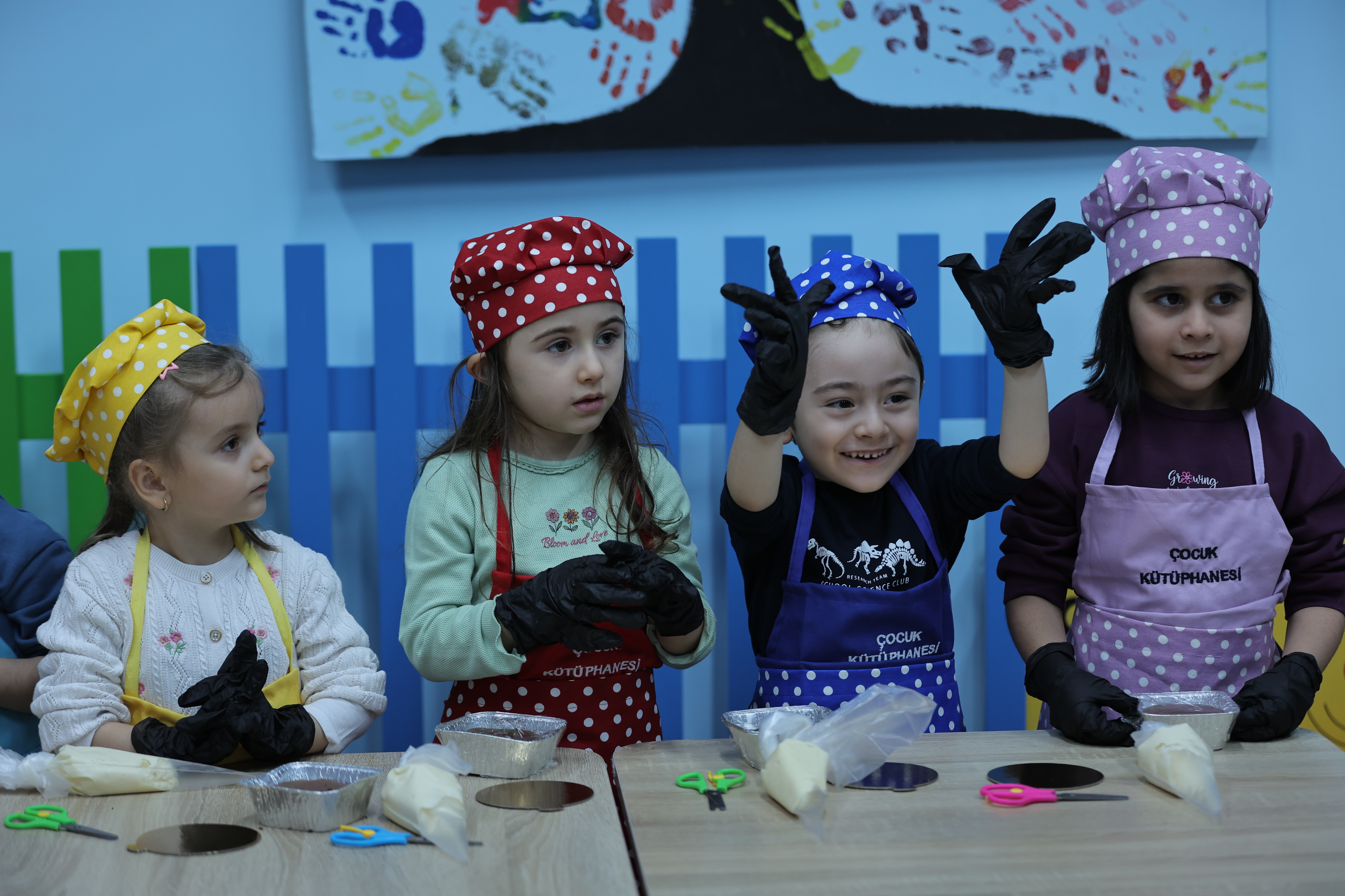 Bu çerçevede Fuat Attaroğlu Çocuk Kütüphanesi ve Müzik Okulu’nda Kaytur Mutfak Sanatları Merkezi Kayseri Mutfak Akademisi Eğitmen Şefi Selin Özcurt, kayıt yaptırarak etkinliğe katılmaya hak kazanan 20 minik misafirine pasta yapmanın püf noktalarını öğretirken, unutmayacakları bir etkinliği de onlar için yaşattı.