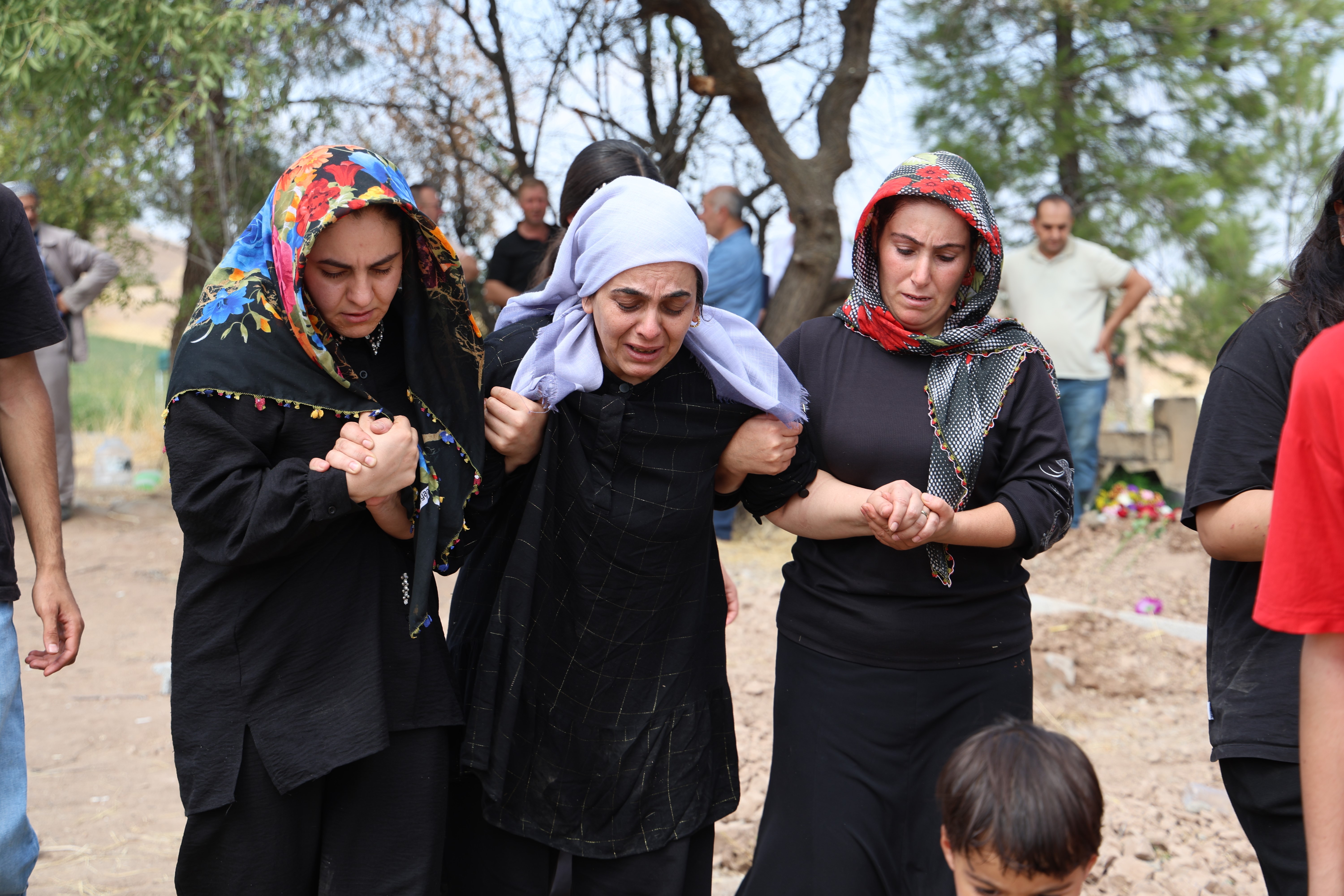 Merkez Bağlar ilçesi kırsal Tavşantepe Mahallesi’nde dün cansız bedenine ulaşılan 8 yaşındaki Narin Güran, komşu köy olan Batı Karakoç köyünde cenaze namazı kılındı. Narin, daha sonra gelinliği tabuta bırakılmış şekilde mezarlığa getirilip gözyaşları için defnedildi.