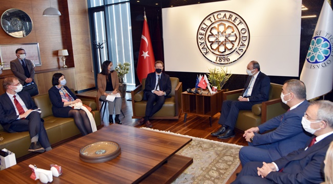 Avrupa Birliği (AB) Türkiye Türkiye Delegasyonu Başkanı Büyükelçi Sayın Meyer-Landrut’u, eşi Brigitte Marie Madeleine Meyer-Landrut ve AB Türkiye Delegasyonu Ekonomi Danışmanı Bartosz Przywara, Kayseri Ticaret Odası’nı (KTO) ziyaret ederek, Başkan Ömer Gülsoy ile bir araya geldi.