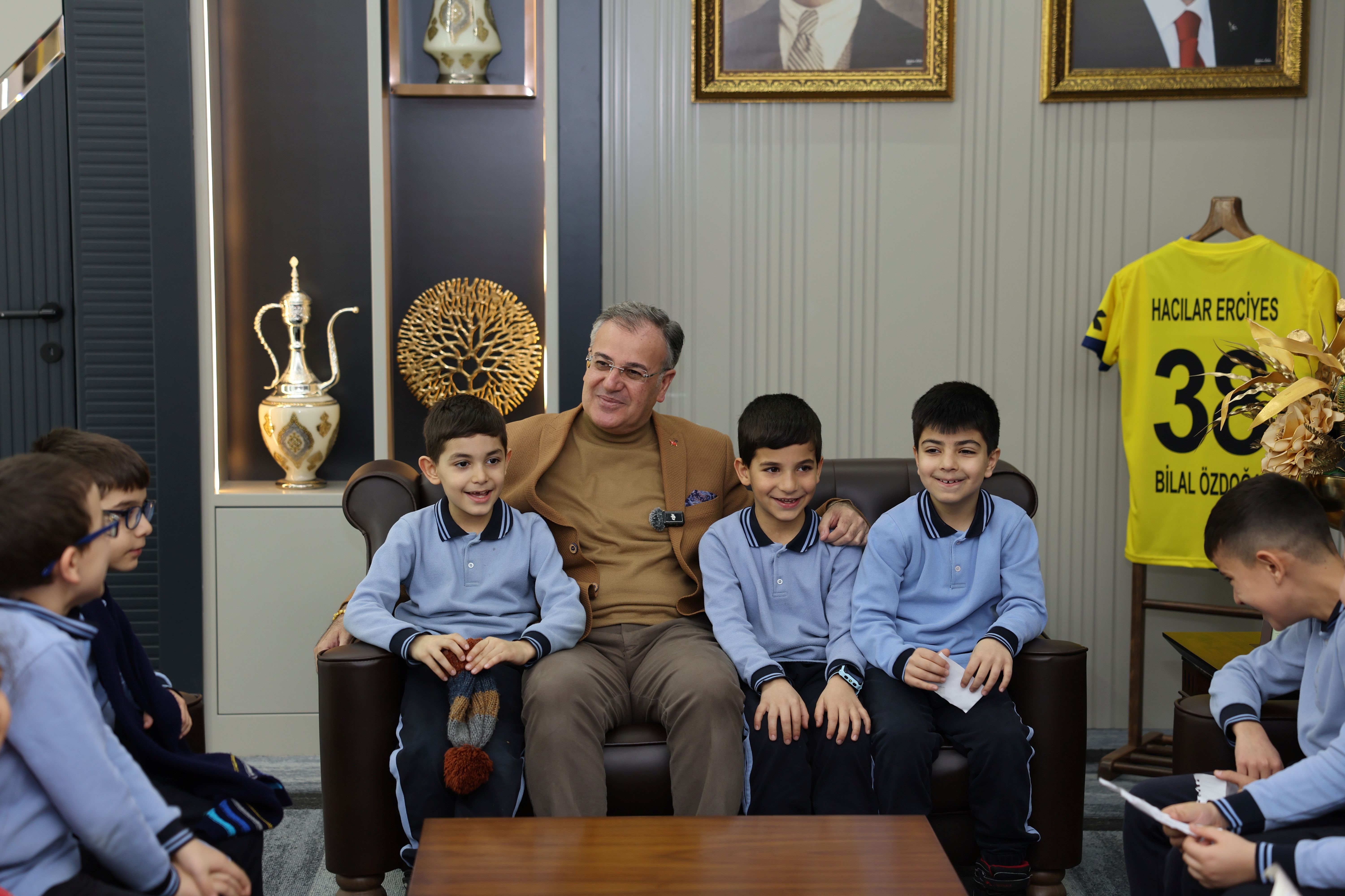 Hacılar Belediye Başkanı Bilal Özdoğan; Hacılar İstiklal İlkokulu 2-A sınıfı öğretmeni Ayşe Arzu Çetinkaya ve öğrencilerini makamında misafir etti. Minik öğrencilerle yakından ilgilenen Başkan Özdoğan, çocukların hazırladığı soruları tek tek yanıtladı.